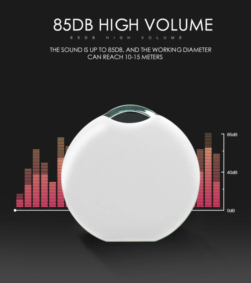 Звук до 85 дБ, а Рабочий диаметр может достигать 10-15 метров.