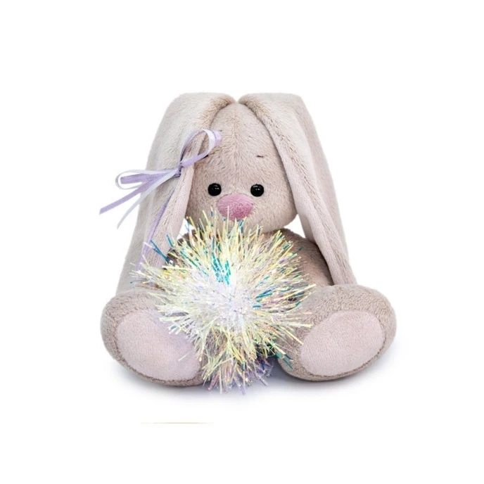 Малыш Зайка Ми от БУДИ БАСА держит в лапках ёлочное украшение словно бенгальский огонёк - объёмный помпон из металлизированных нитей. На ушке у Зайки бантик из двух атласных лент. Одежду и аксессуары можно снимать. Трогательный подарок, чтобы выразить чувства или сделать приятный сюрприз.