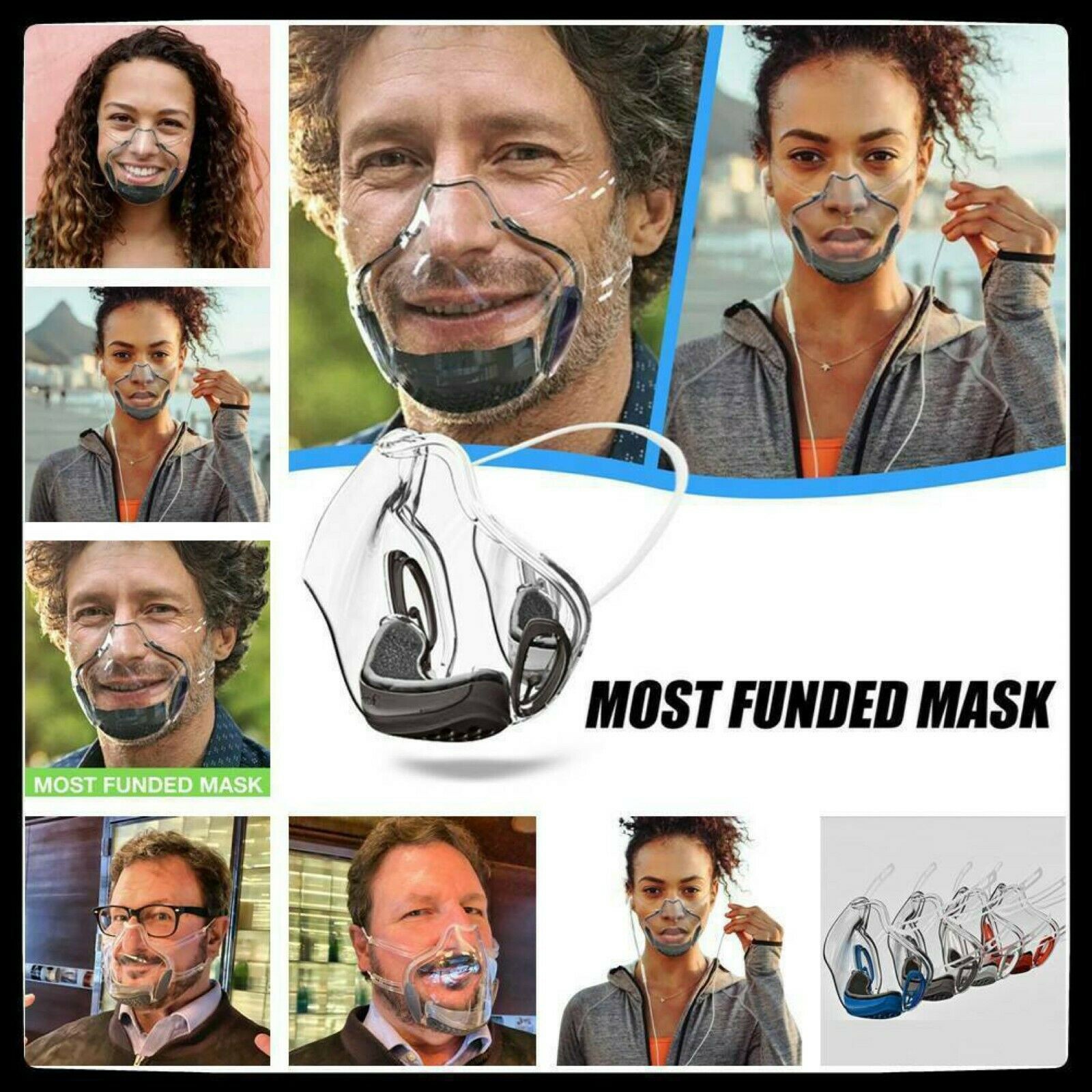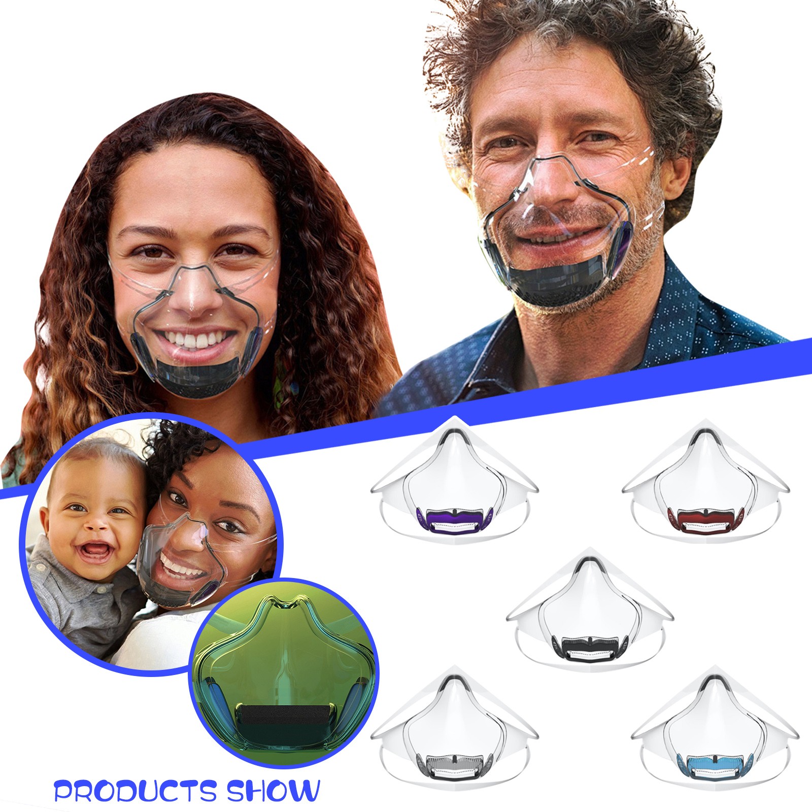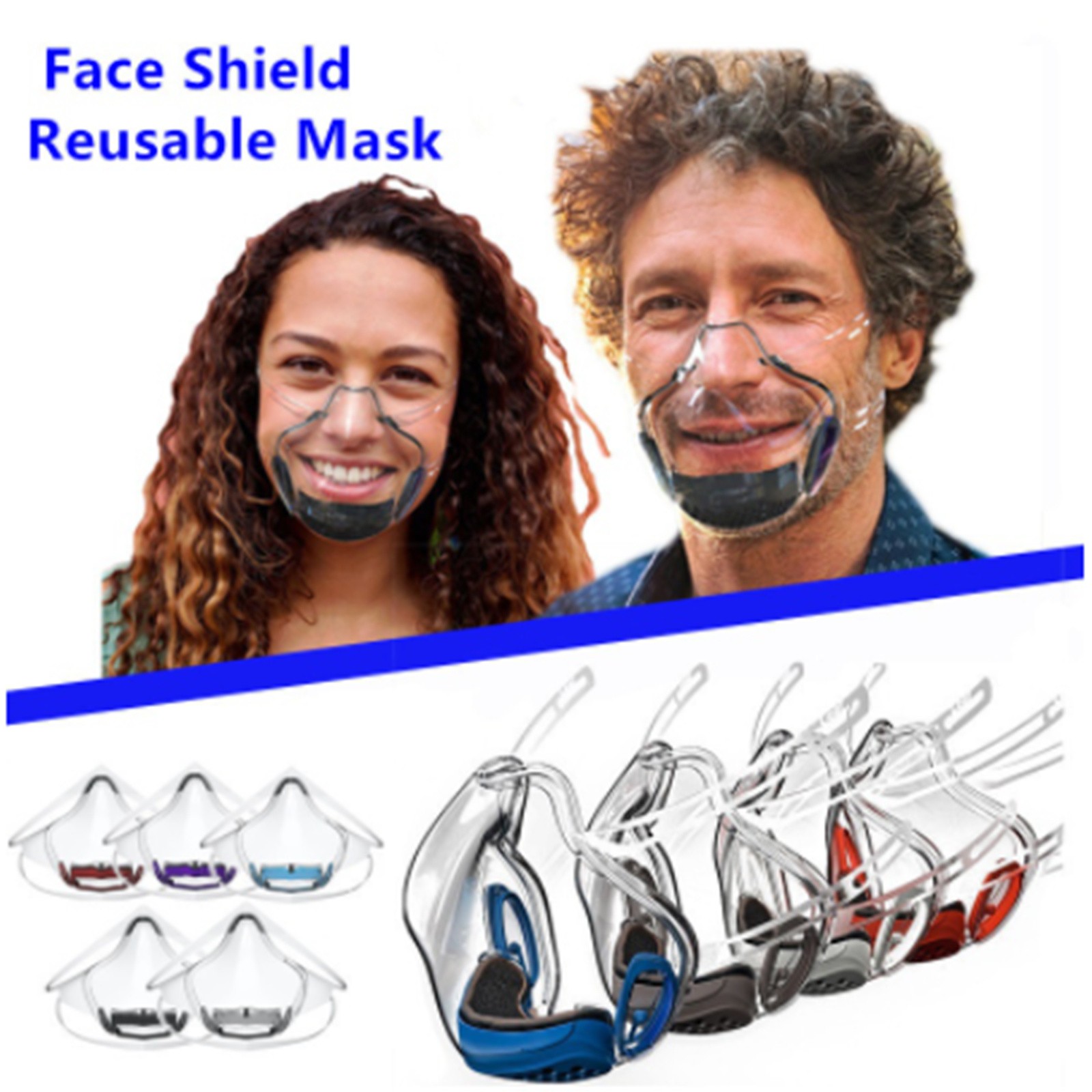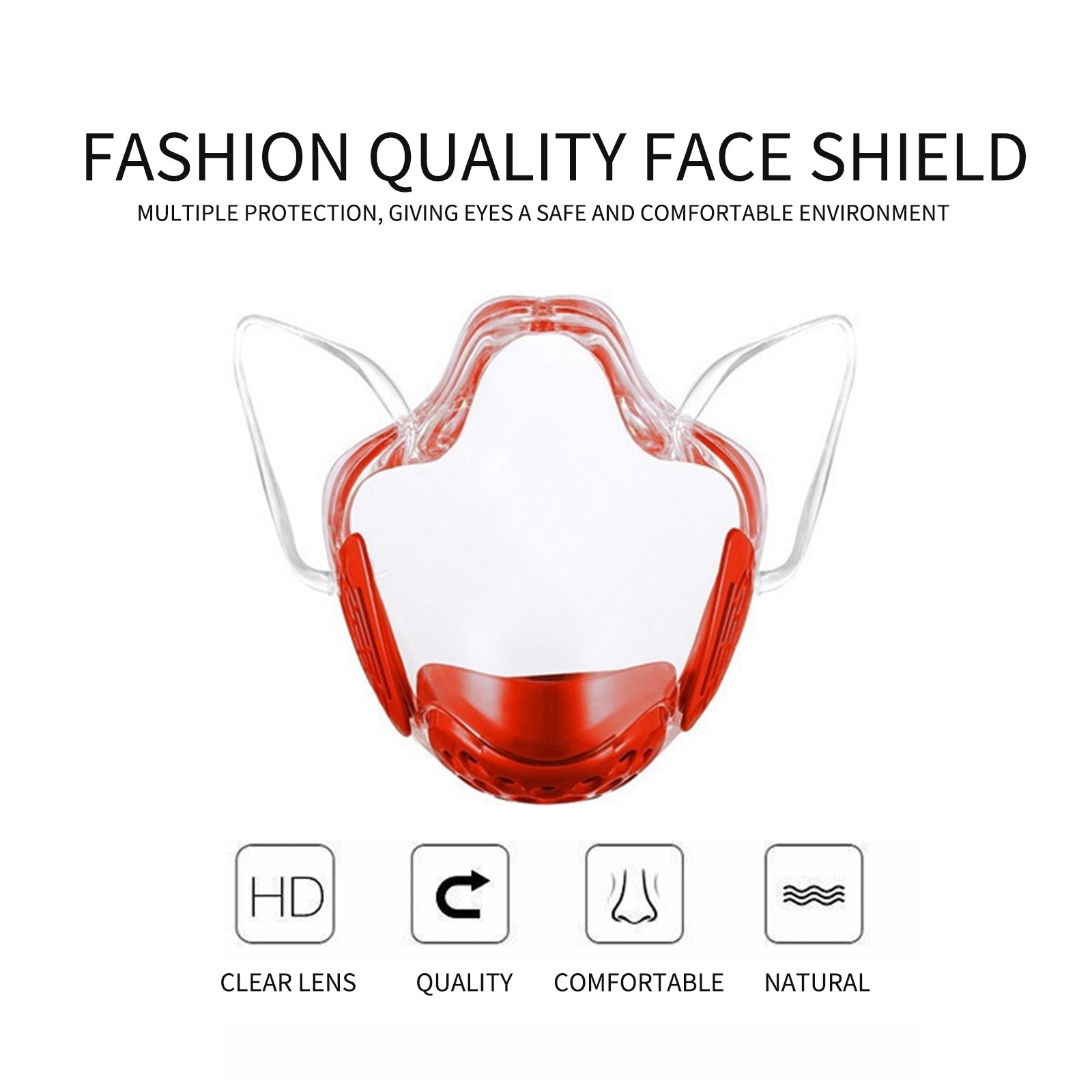 【Высококачественный материал 】-Материал: Поликарбонат. Изготовленные из высококачественного и прозрачного поликарбоната, они многоразовые, просто хорошо мойте их с мылом и водой и высушите мягким полотенцем. 【Удобный и модный дизайн 】-эргономичный дизайн и его элегантная эстетика делают аксессуар для ежедневного использования для любого случая и времени года. 【REUSABLE】-просто хорошо мойте их с мылом и водой и высушите их мягким полотенцем. Если вы находитесь на ходу и хотите освежить, просто протрите спиртом. [Применимый уровень]-вы можете использовать его в любом транспортном средстве: автобус, такси, велосипед, скутер, эксклюзивный, элегантный, повседневный, современный... В вашем бизнесе, встречах, работе, с друзьями. 【Кристальная чистота 】-посмотрите на других, позвольте другим увидеть вашу улыбку! 100% полностью прозрачный для полной видимости лица. Соединение с людьми через эту прозрачную маску удобно носить весь день. Вы можете носить макияж, это позволяет показать свои эмоции, чувствовать себя свободно и общаться без ограничений.Посылка включает в себя: