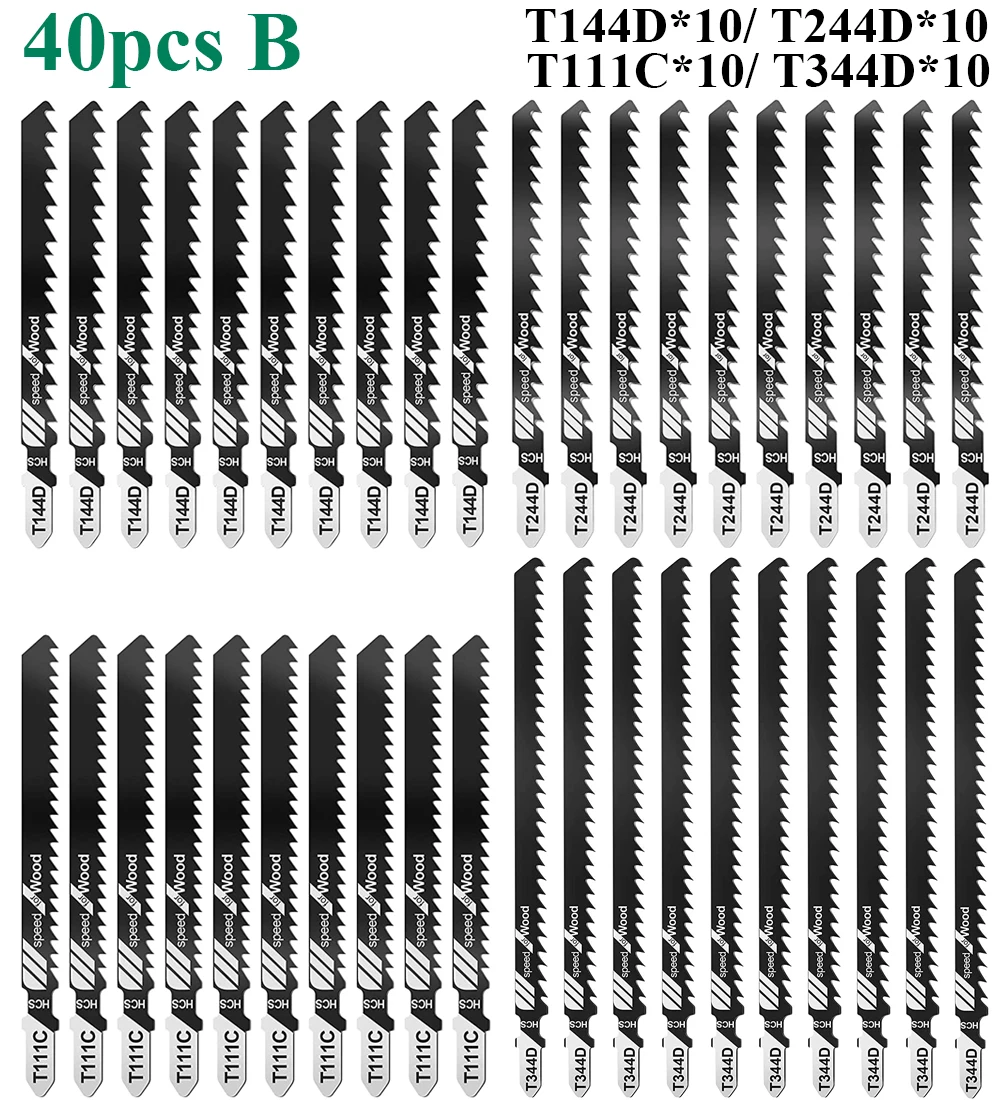 40pcsA: 40PCS jig saw blade (T144D/T244D/T118A/T111C every 10PCS)