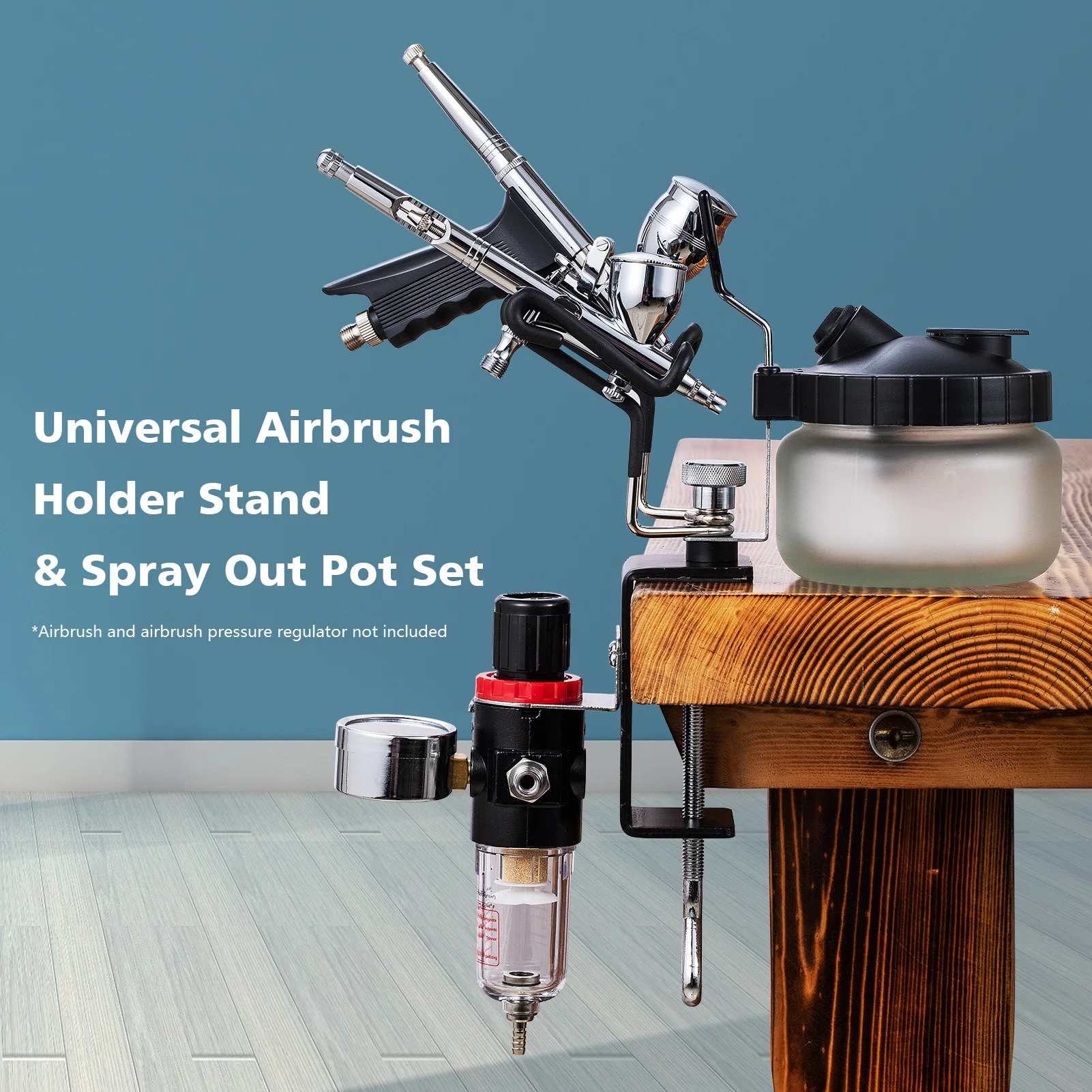 Также разработан с боковой стойкой для удерживания регулятора давления аэрограф.