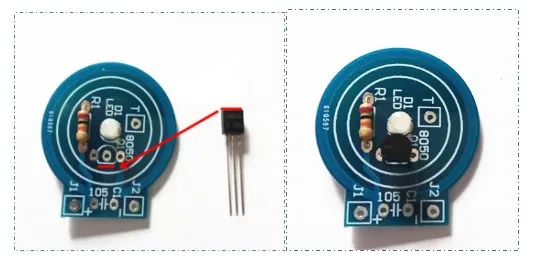 4. Приварите Триод 8050, обратите внимание на Шелковый экран на канбане, плоский к плоской