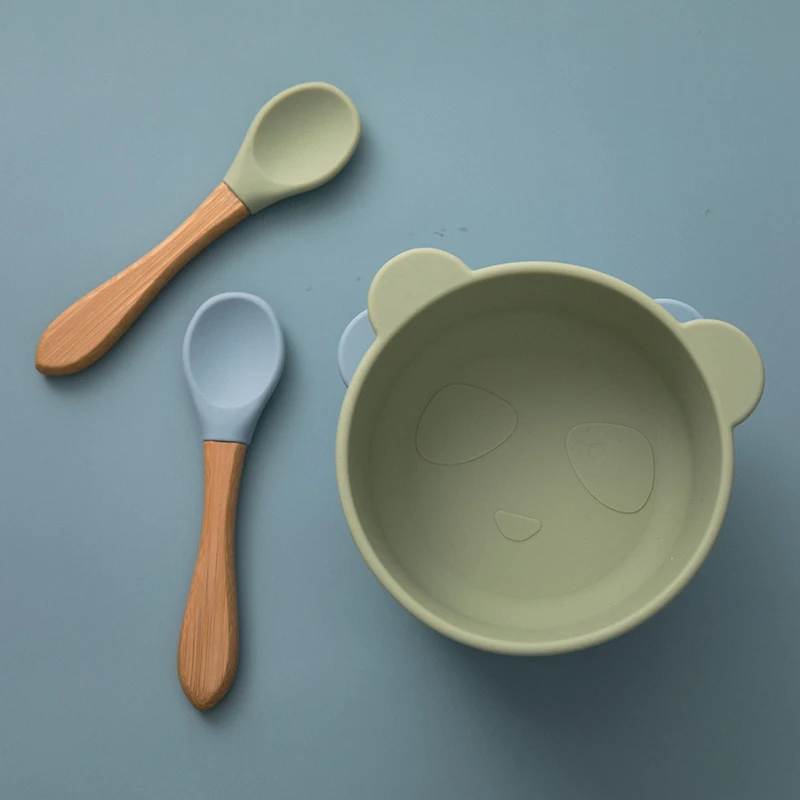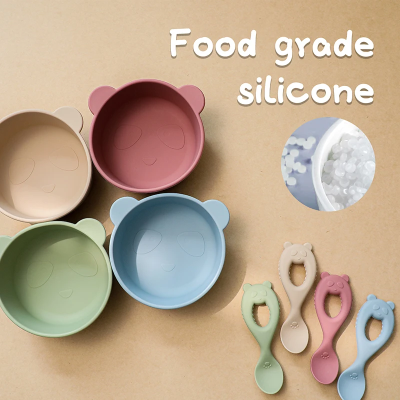 2 шт. детская силиконовая мультяшная Милая чаша для кормления посуда Водонепроницаемая ложка Нескользящая посуда BPA бесплатная силиконовая посуда