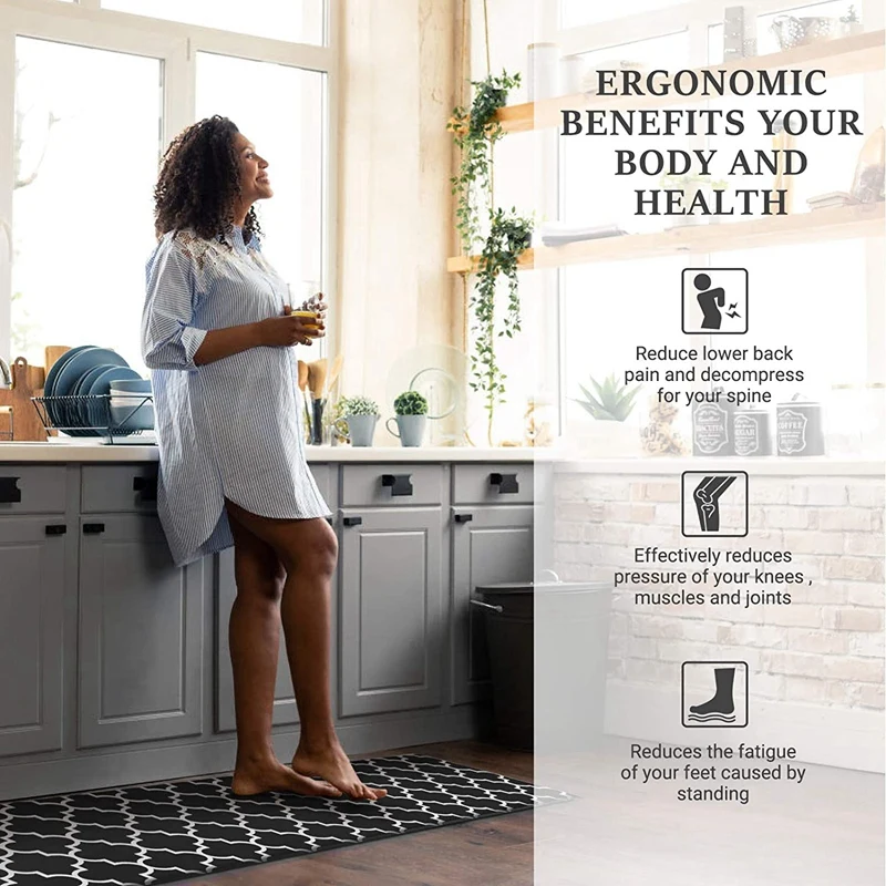 [Анти-усталость] --- кухонные коврики с защитой от усталости эргономичны и обеспечивают мягкую поддержку, чтобы улучшить циркуляцию и осанку во время работы на кухне или на любых рабочих станциях. Узор и цвет дополняют кухню/комнату красиво и делают пенопластовые коврики идеально подходят для домашнего или коммерческого использования в таких областях, как парикмахерские, рестораны для людей, которым необходимо стоять в течение определенного времени.