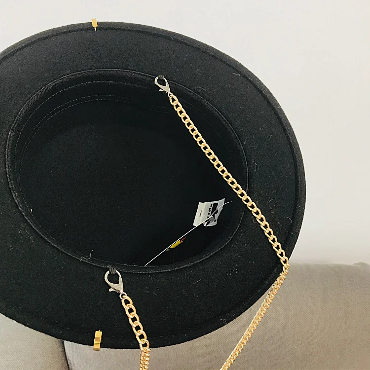 2021 фетровая шляпа ретро шерстяная фетровая шляпа женская Европейская панк цепочка новинка шляпы с плоским верхом Мужская кепка Уличная мода Дикий тренд