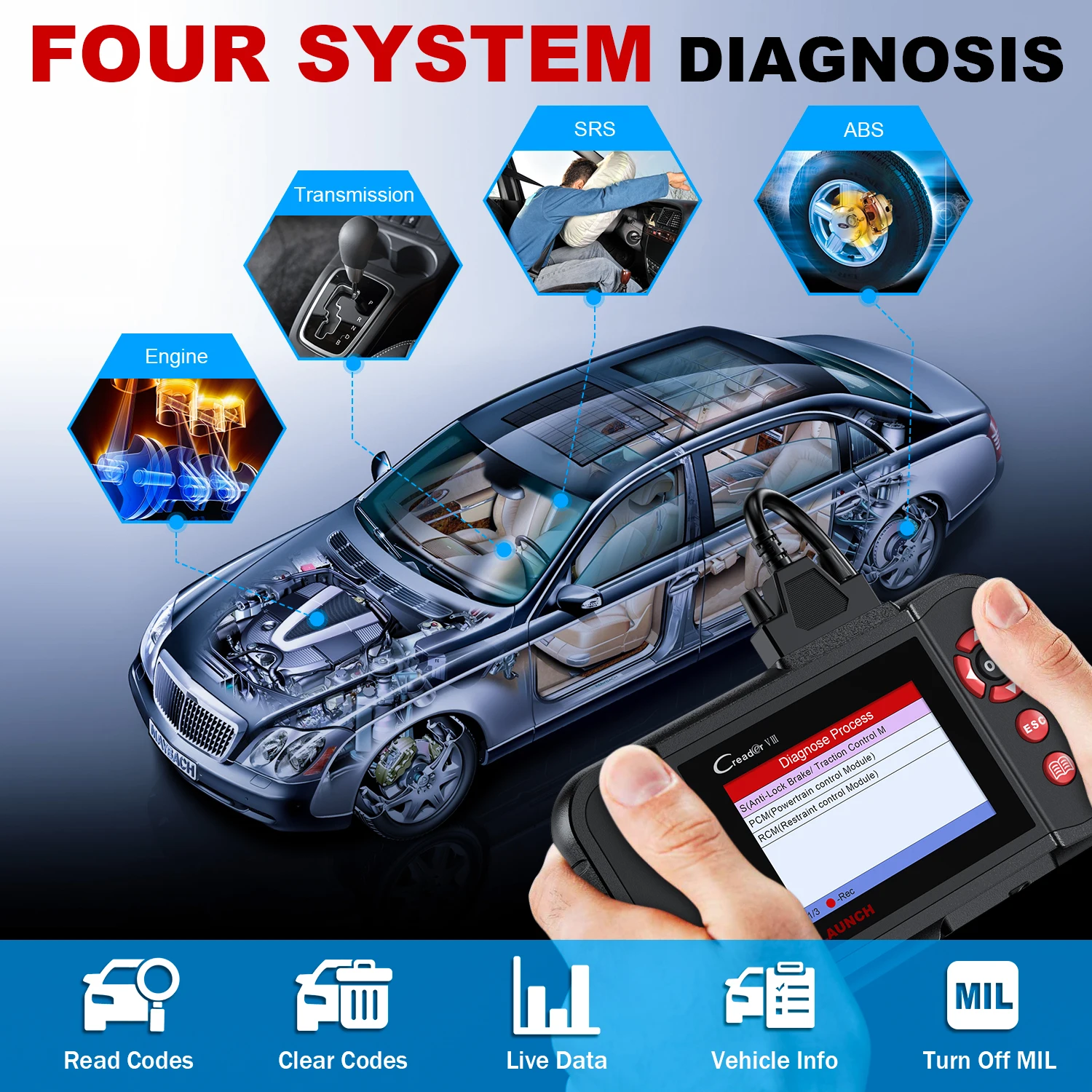 Creader VII-это комплексный диагностический прибор с запуском, он не только включает полную функцию OBDII/EOBD, но и поддерживает больше функций четырех систем