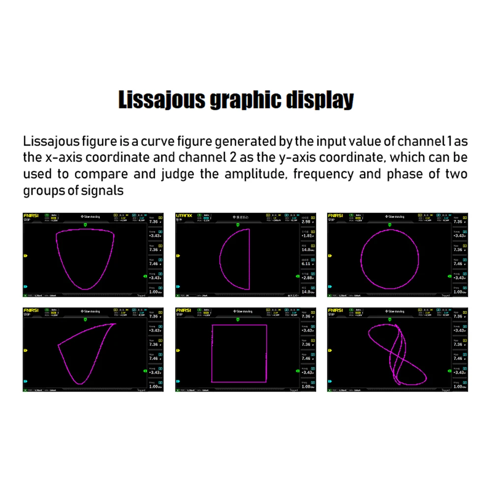 Функция графического дисплея Lissajous может использоваться для определения амплитуды, частоты и фазового контраста двух групп сигналов.