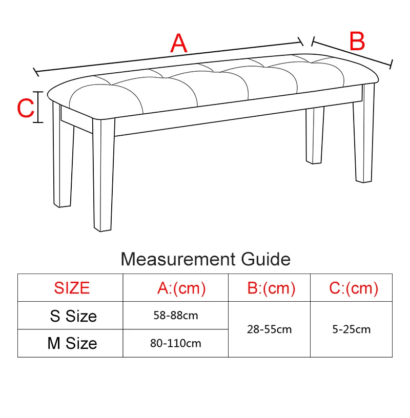 · PERFECT FIT AND DECORATING - The bench covers available in a variety of colors to complement your current scheme, fit most of the regular size upholstered dining bench 58 to 110cm long, 28 to 55cm wide; Please check the Size Chart in product picture before order【important】