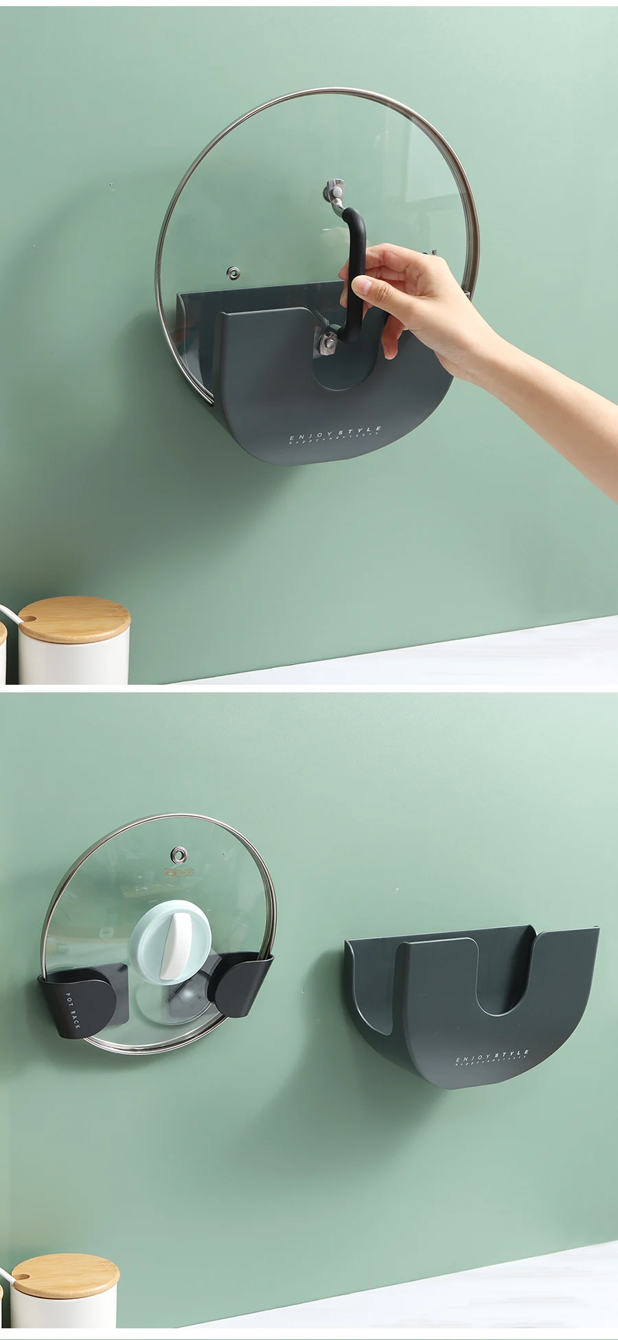 1. Настенная стойка для крышки горшка, без гвоздей и без сверления, удобное хранение;