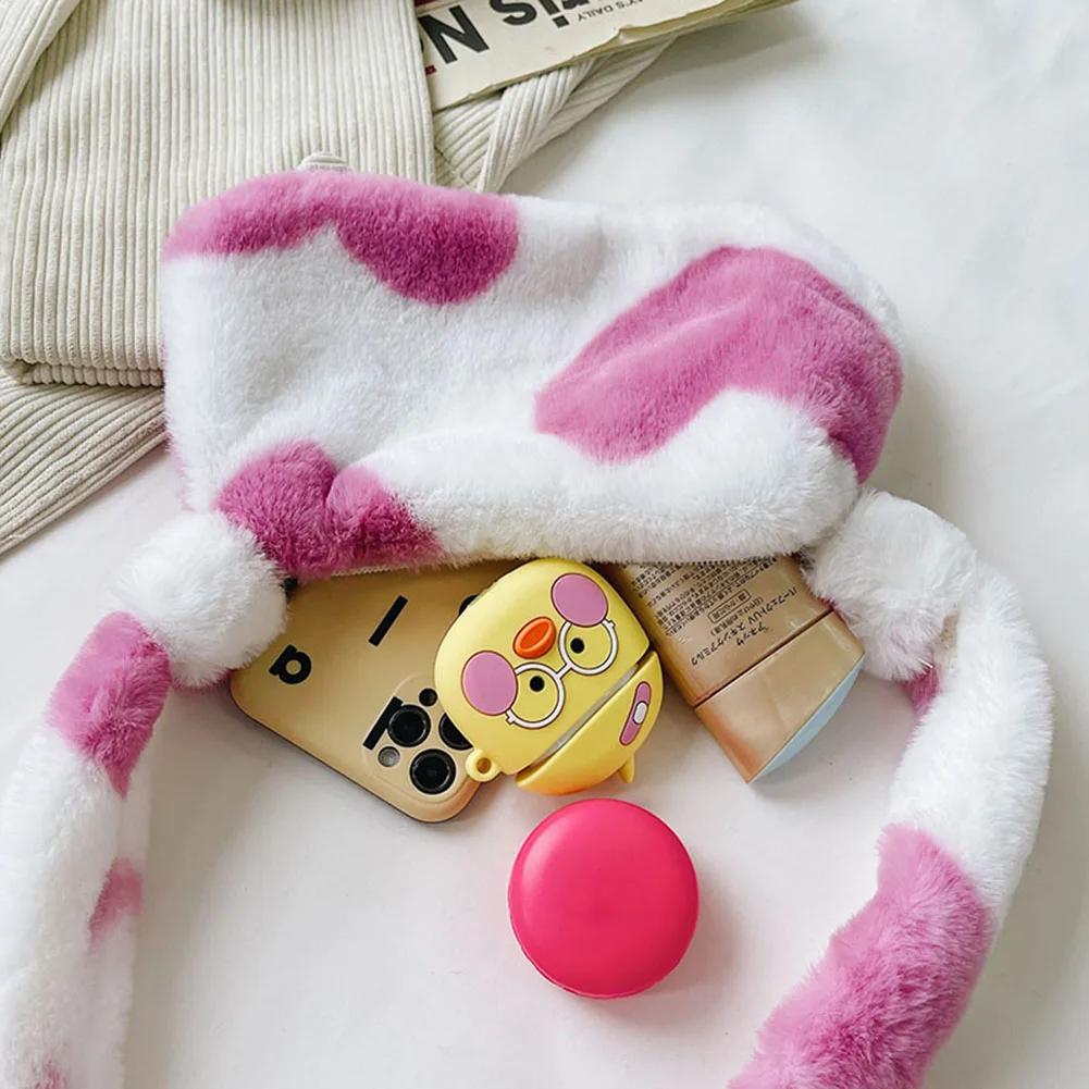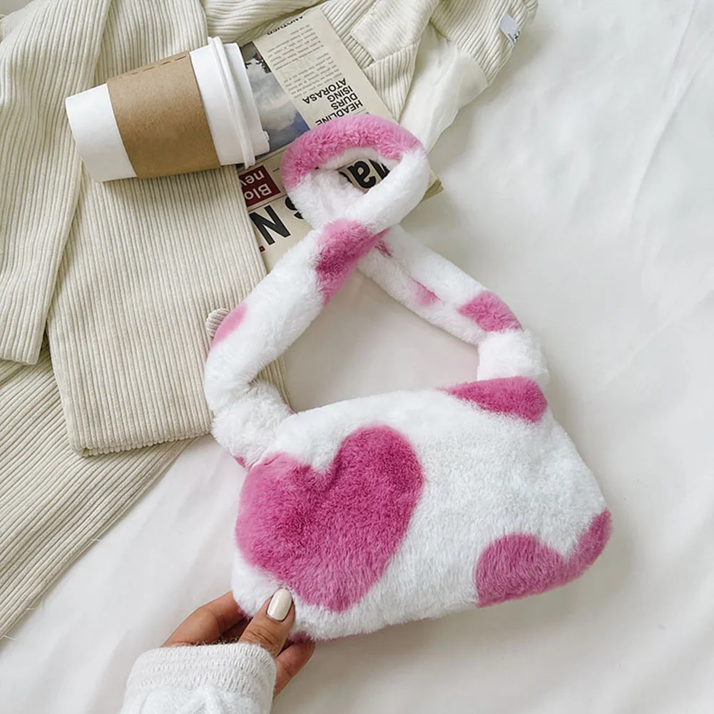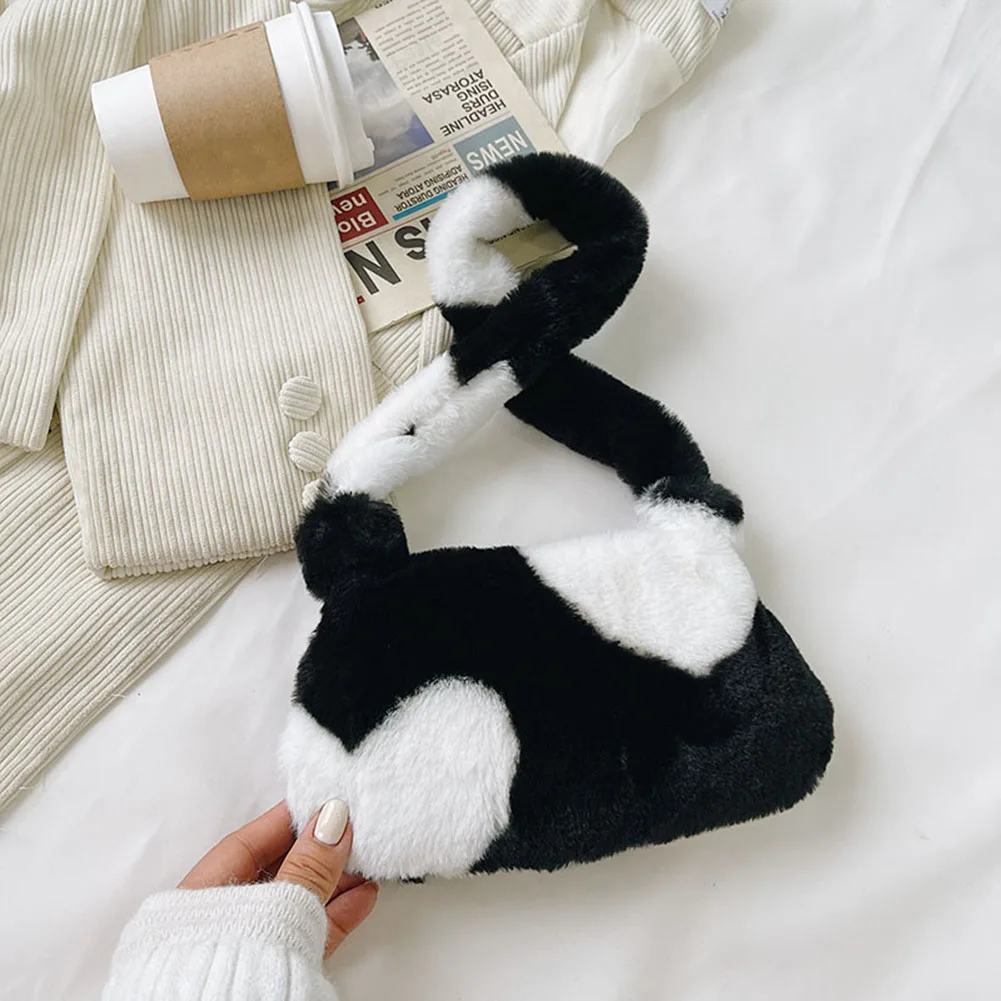INS, женские мини сумки на плечо с цветочным принтом, новинка 2021, зимние теплые мягкие плюшевые сумки под руку, леопардовая Зебра, коровья кожа, пушистые сумки-тоут