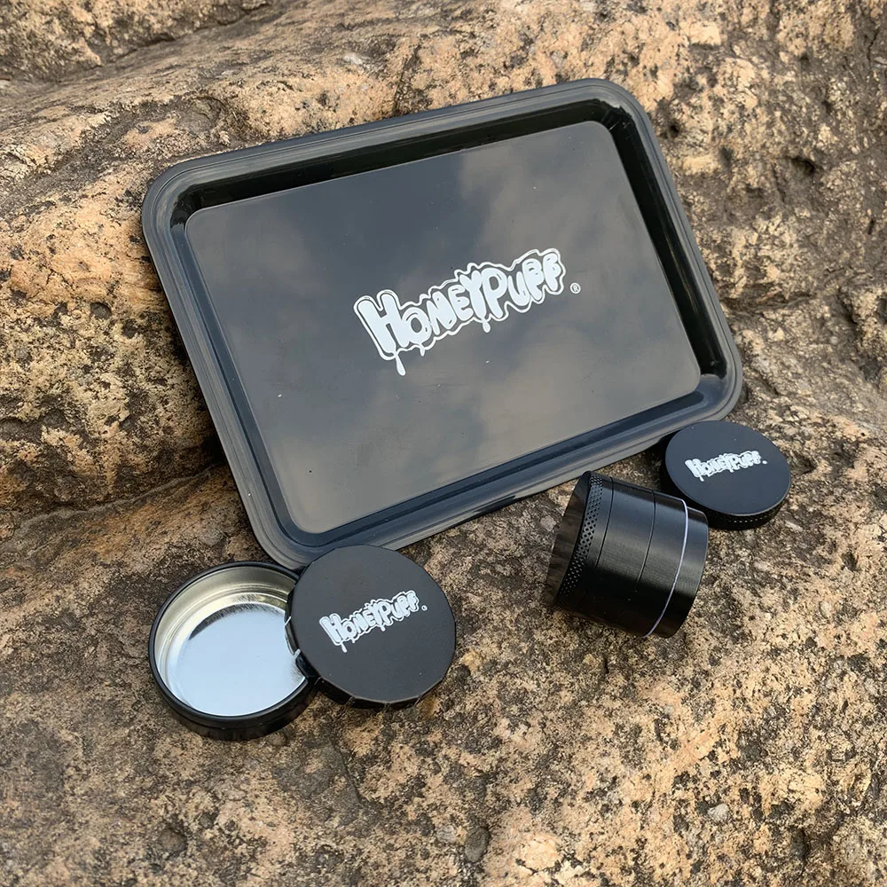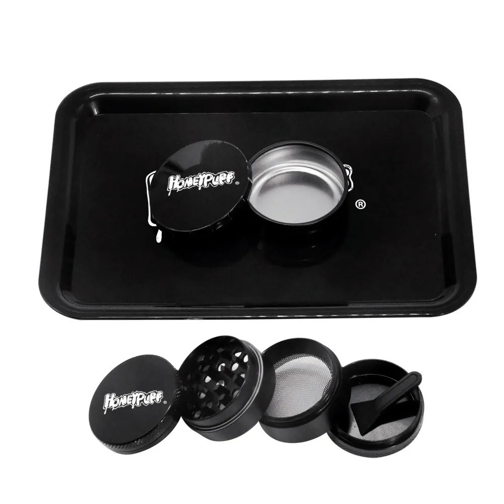 Посылка:1 х мельница для трав из цинкового сплава HONEYPUFF1 х пластиковый роликовый лоток HONEYPUFF1 х HONEYPUFF контейнер для хранения металла