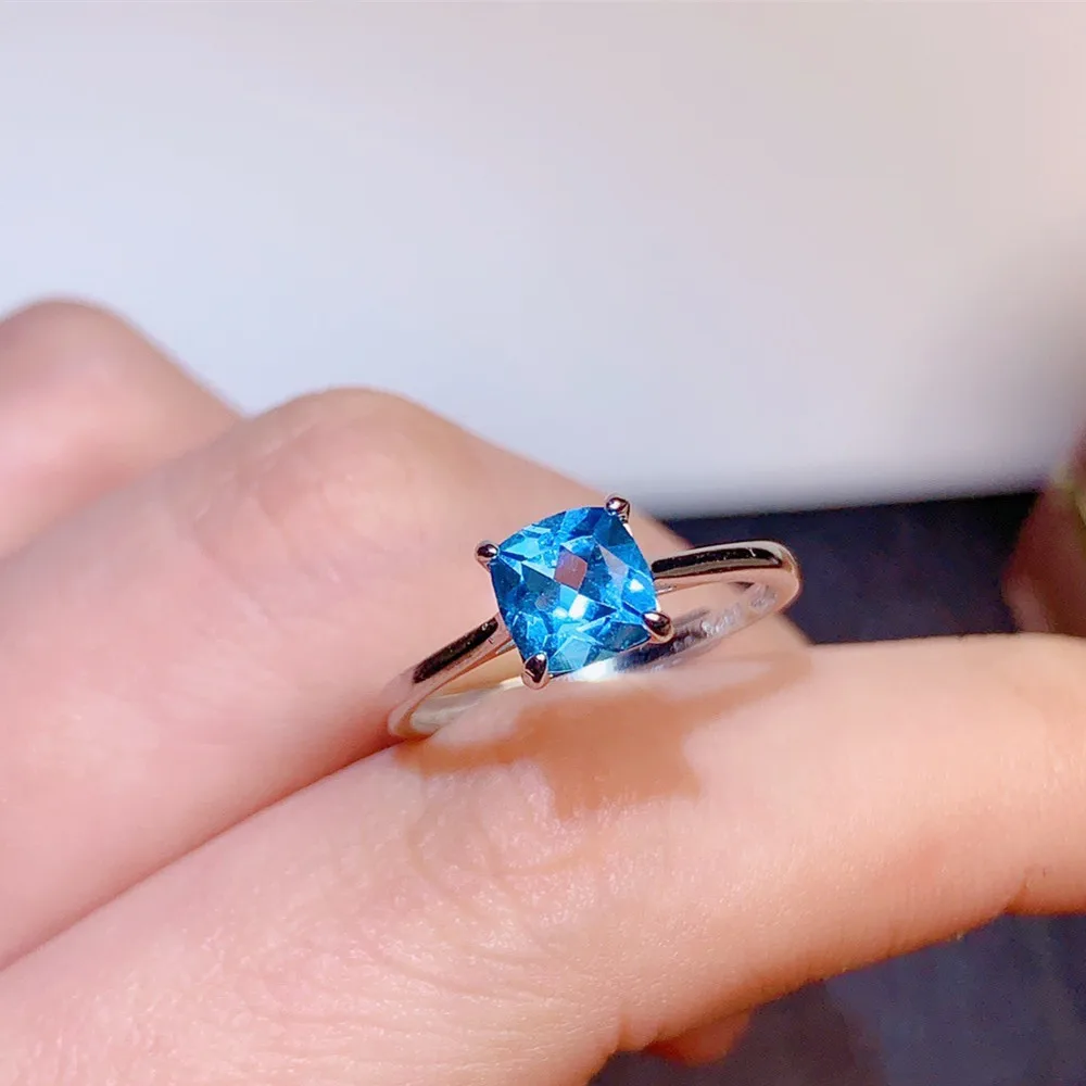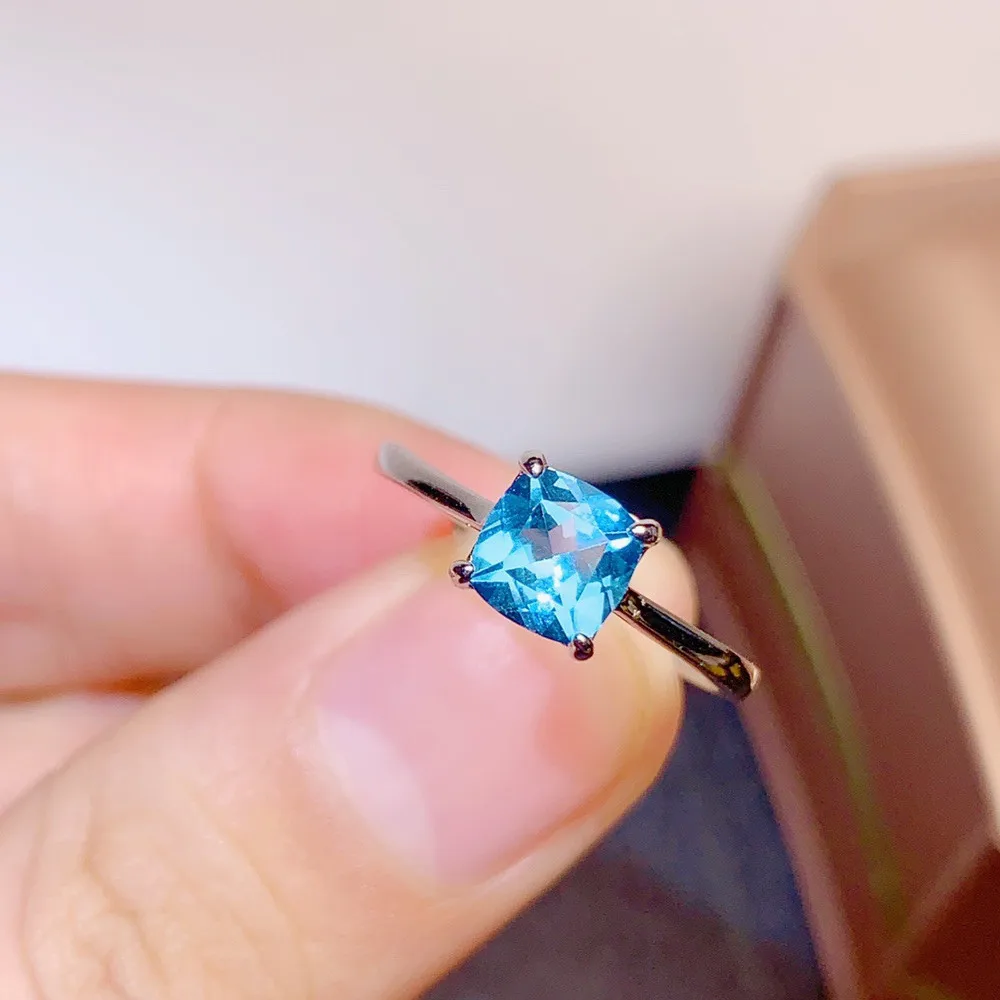 Натуральный топаз 1.5 карат, кольцо из серебра 925 пробы, инкрустированный основной камень 6*6 мм, темпераментные корейские ювелирные изделия