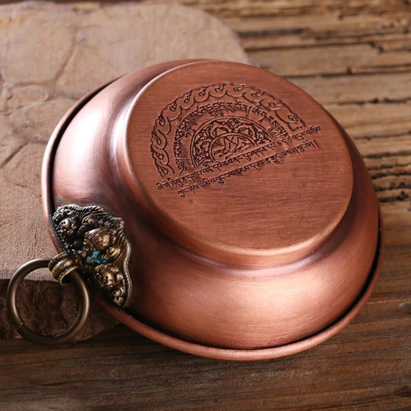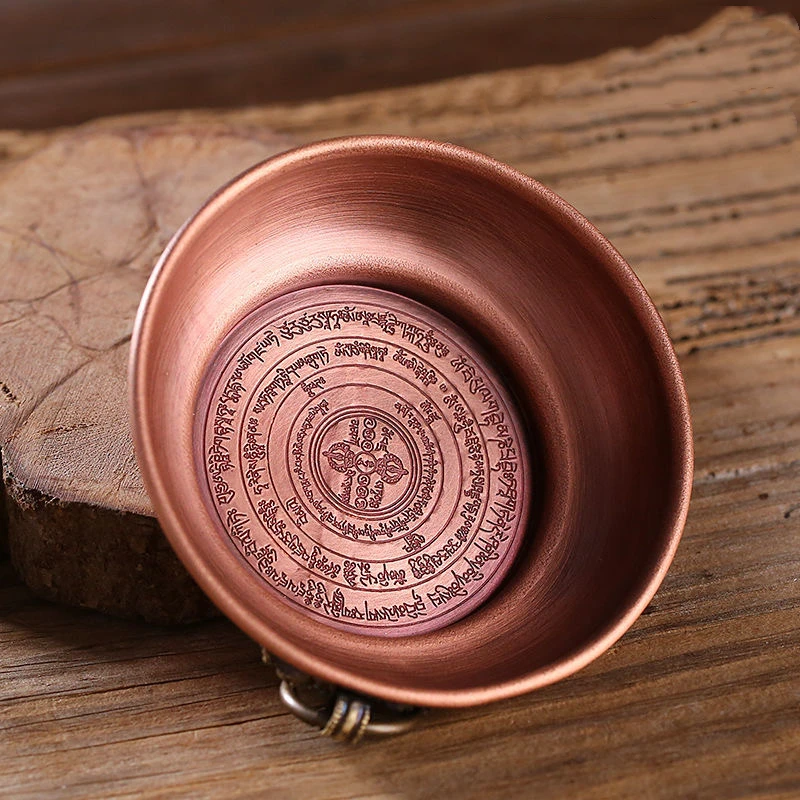 Многофункциональная красная медная буддийская чаша, благоприятная тибетская гравировка, пожарный поднос, мандала, дымовая печь