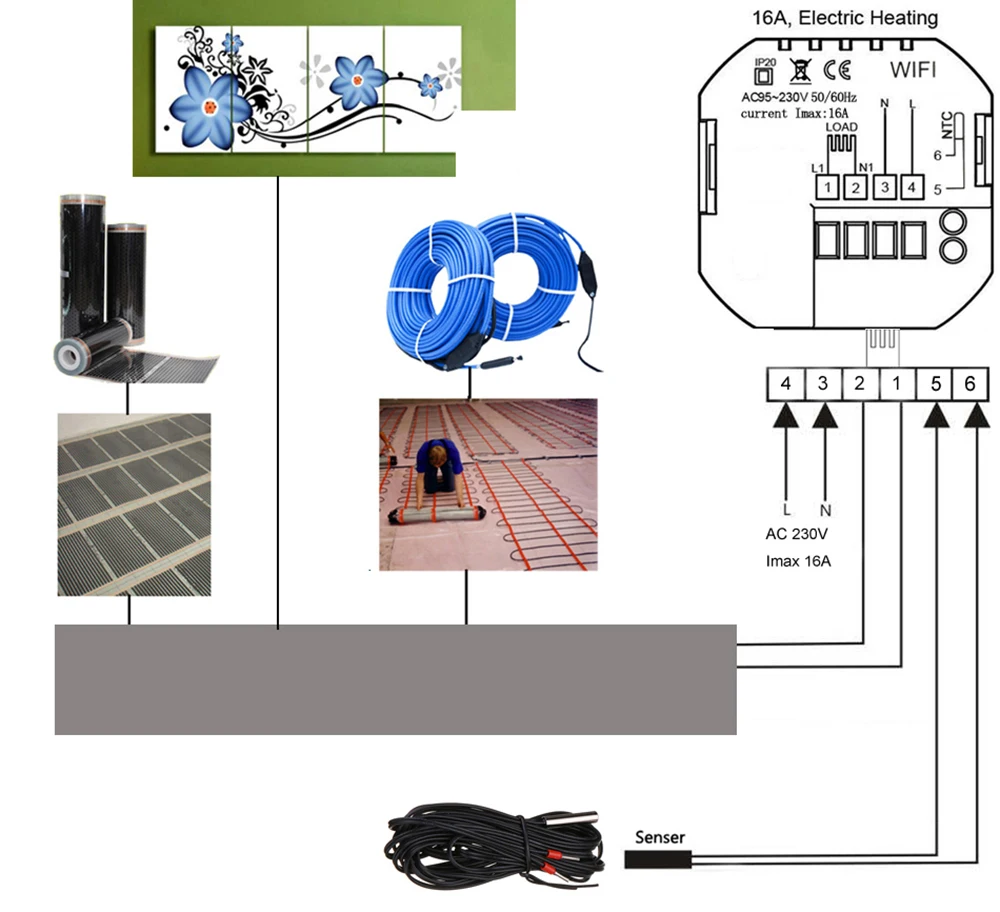 16A HY517WE- wifiТермостат отопления используется для управления инфракрасной панелью, электрическим обогревателем, электрическим подпольным покрытием