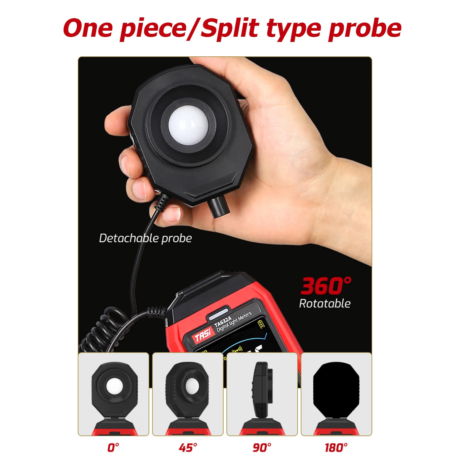 User-friendly Split Type Design: with compact size and light weight design, the measurement sensor and main body of the lux meter are detachable, and connected with a retractable spring, you can hold and operate it very conveniently.