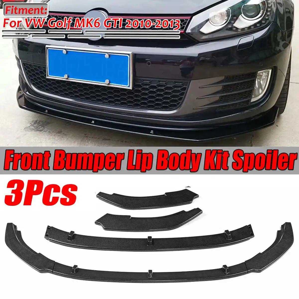 Для VW для Golf MK6 GTI 2010-2013 углеродное волокно внешний вид переднего бампера спойлер разветвитель крышка обшивка Корпус Комплект 3 шт