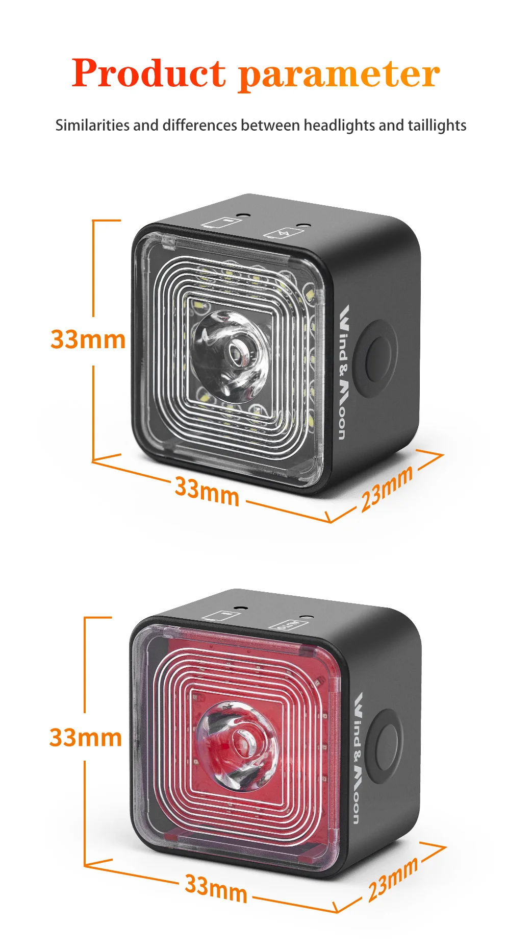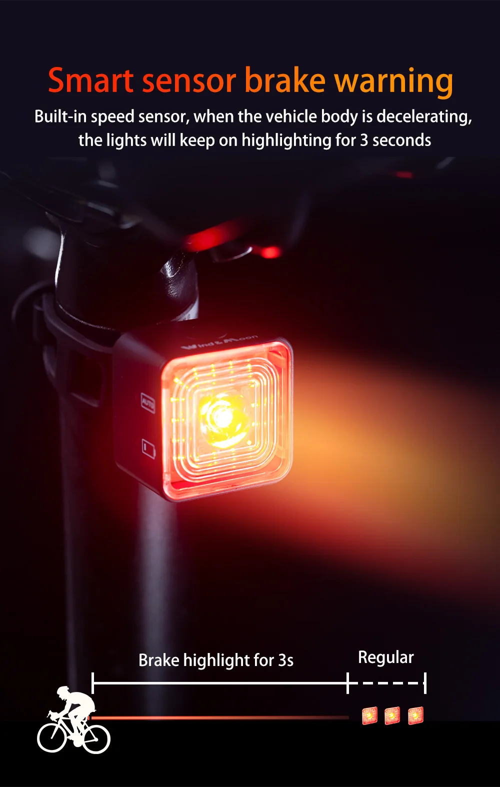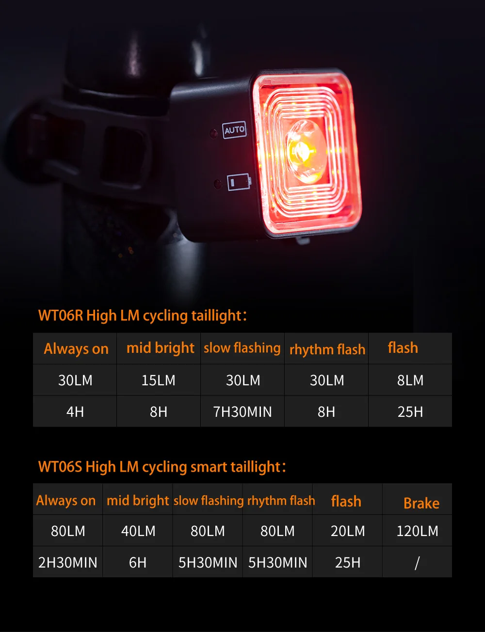 Высокий люмен WT06 головной светильник и задний светильник, наборы для велосипеда IP66, водонепроницаемый, для езды на велосипеде, умный датчик, тормозная предупреждающая лампа, 5 режимов переключения передач