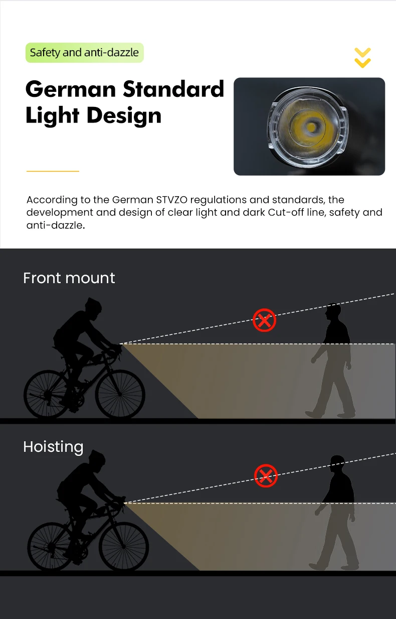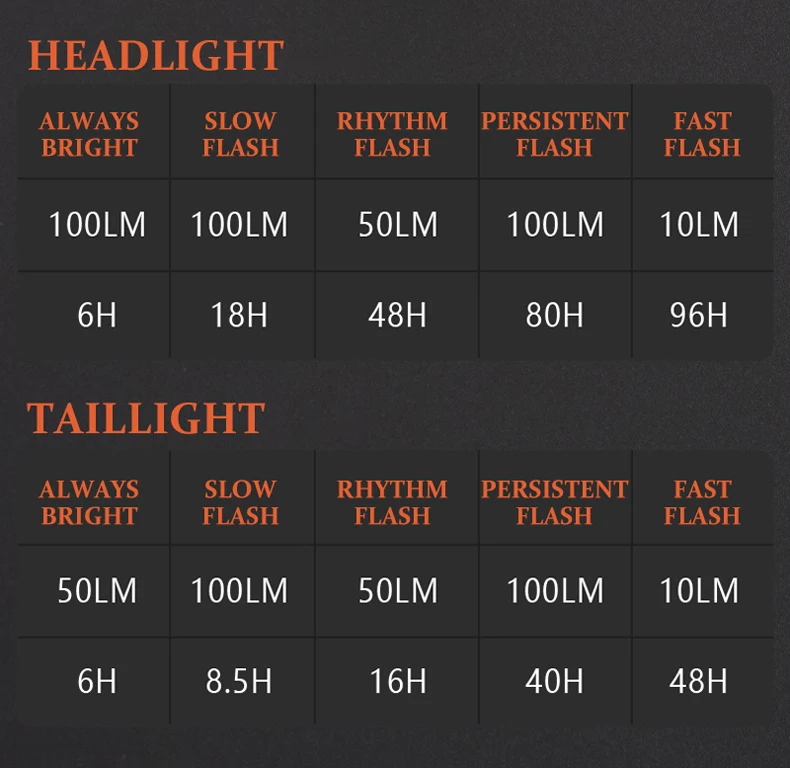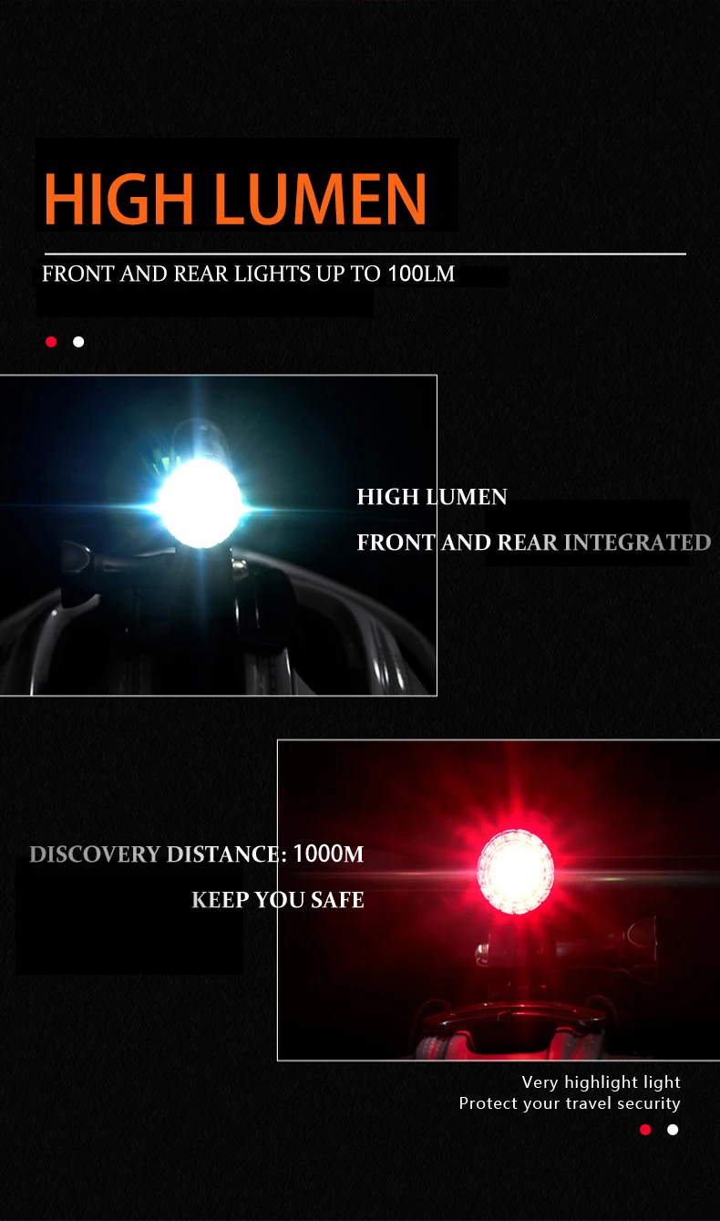 ** Высокие Люмены, передние и задние огни могут достигать 200 люменов, супер проникающая мощность, расстояние обнаружения более 1000 метров