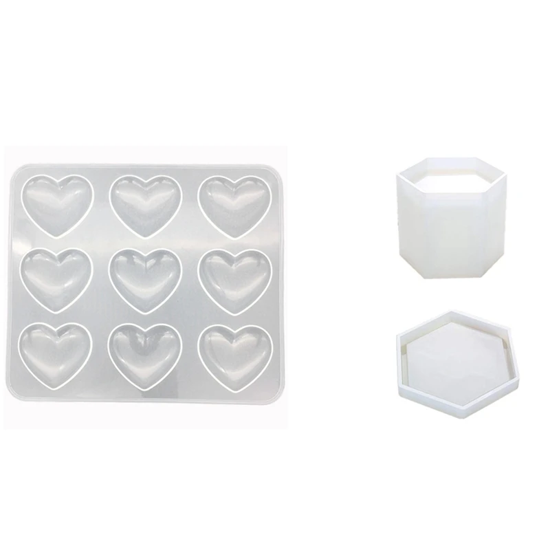 3 шт Mold: 1 шт 9-даже в форме сердца Форма силиконовая форма для выпечки в форме цветка и 2 шт шестиугольная Призма эпоксидной смолы силиконовые формы с коврик для мыши