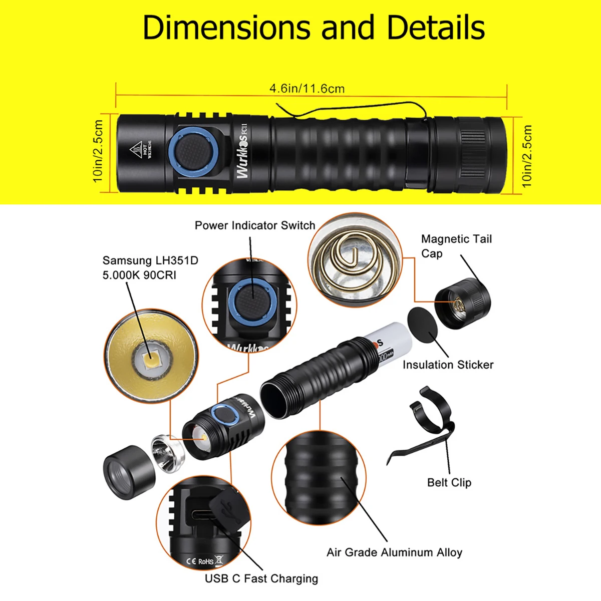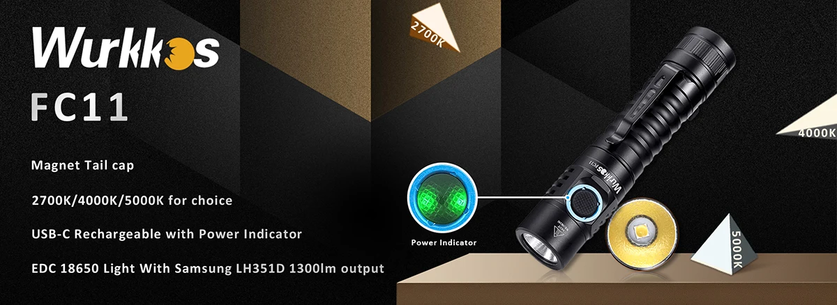 Wurkkos FC11 является мощным, универсальным EDC/наружным фонариком, предназначенным для дома, EDC или активного отдыха, как кемпинг, туризм, рыбалка или охота. Он питается от одного литий-ионного аккумулятора 18650, заряжается через USB-C и поставляется с магнитной задней крышкой для гибкого и удобного использования. Фонарик имеет две группы режимов: Группа 1 с 6 ступенчатыми режимами и группа 2 с режимом ramping.