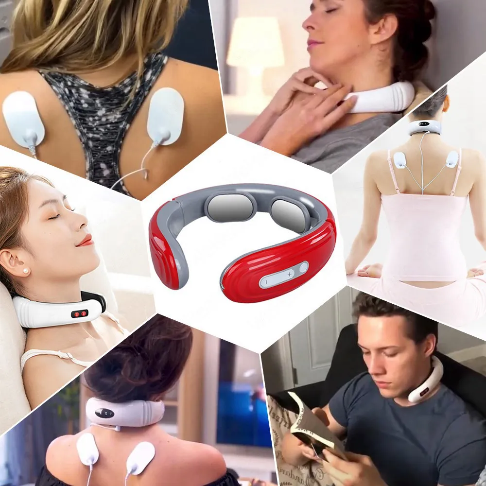 3. Возьмите массажер для шеи вокруг шеи (если вы хотите расслабить других, пожалуйста, вы можете подключить электорный пластырь и приклеить его туда, где вы хотите)