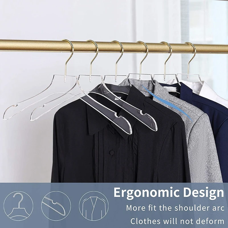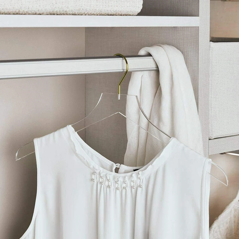5 шт. прозрачные вешалки для одежды с золотым крючком, прозрачные майки, вешалки для одежды с вырезами для женщин и детей