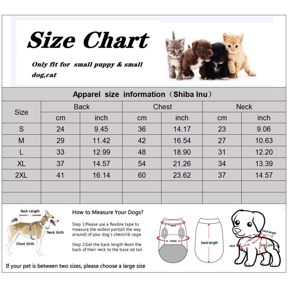 5. Если размеры вашей собаки падают между двумя размерами, пожалуйста, выберите больший размер.