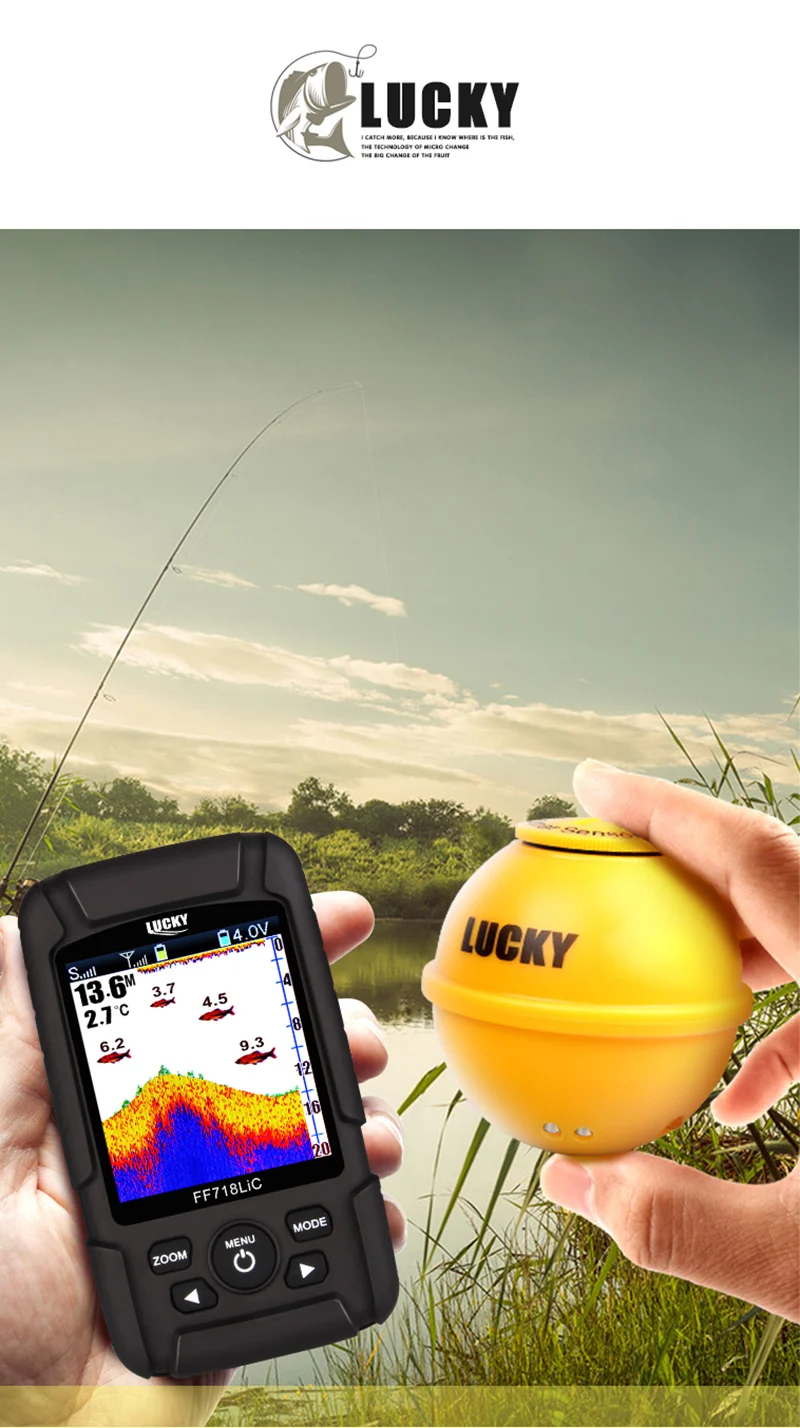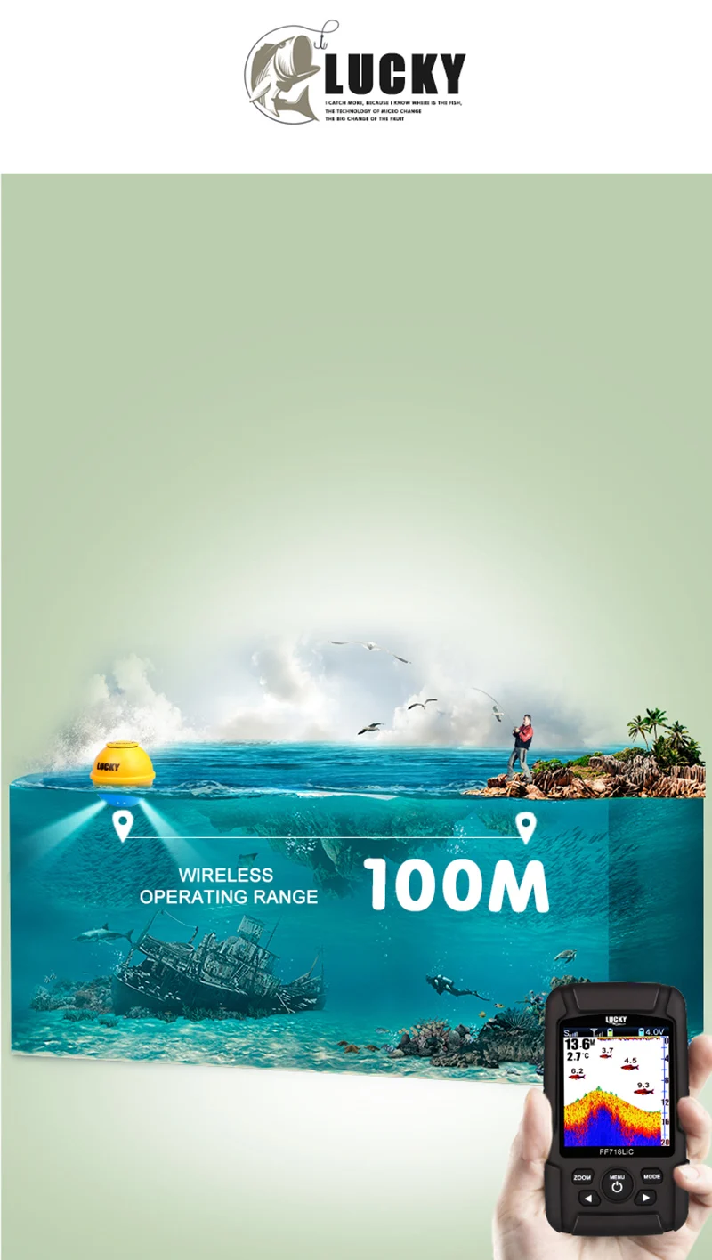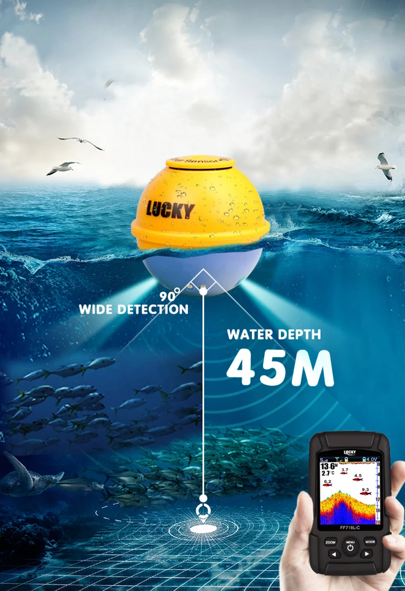 Рыболокатор Eyoyo FF718LIC-WLA, беспроводной рыболокатор, рыболовный сонар, 45 м/147 футов, эхолот, глубже