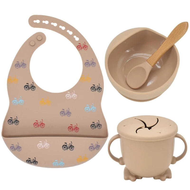 Новые цвета, набор для кормления, силиконовые нагрудники пищевого качества, Детская тарелка, нескользящая, всасывающая чаша, детская посуда, водонепроницаемый нагрудник, BPA, Бесплатная ложка