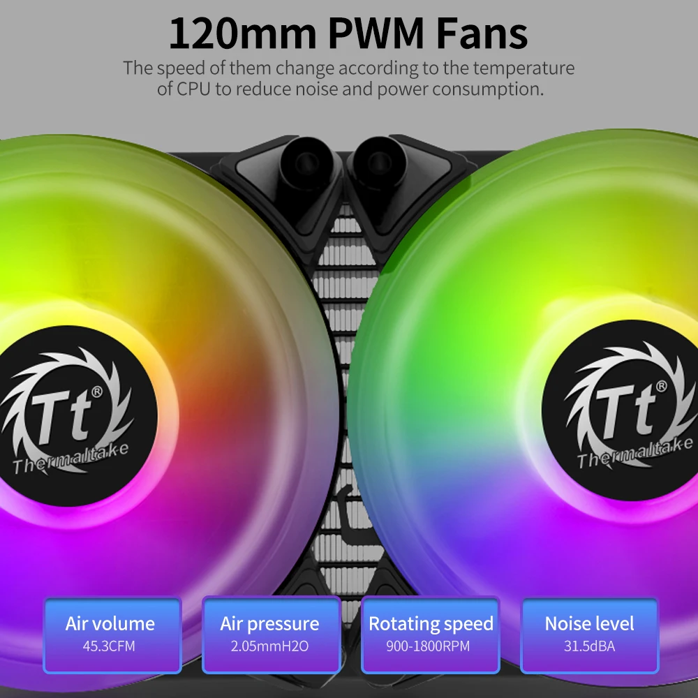Этот жидкостный охладитель AIO позволяет вентиляторам и головке насоса синхронизировать световой эффект с другим оборудованием внутри компьютерный чехол. И с PWM вентиляторами, он предлагает более низкое энергопотребление, чем обычные вентиляторы. Кроме того, он совместим с Intel LGA2066/2011-3/2011/1366, 115X, 1200 и AMD TR4, AM4, AM3, AM2.