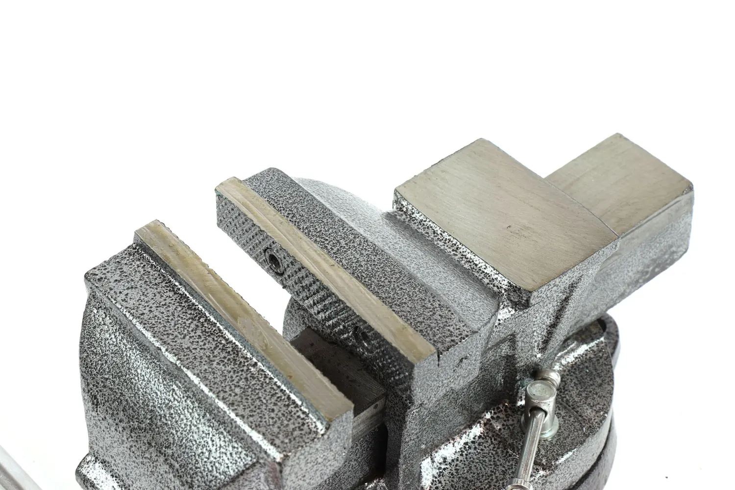 Массивный чугунный корпус и основание покрыты краской, которая защищает тиски от коррозии, что увеличивает их срок службы. Сменные зажимные губки изготовлены из высококачественной закаленной стали. Чехол с возможностью поворота на 360 ° относительно основания способствует удобной обработке заготовки. Наличие наковальни расширяет функциональность слесарных тисков. Имеется базовое крепление к 3-м болтам верстака (настольного компьютера).
