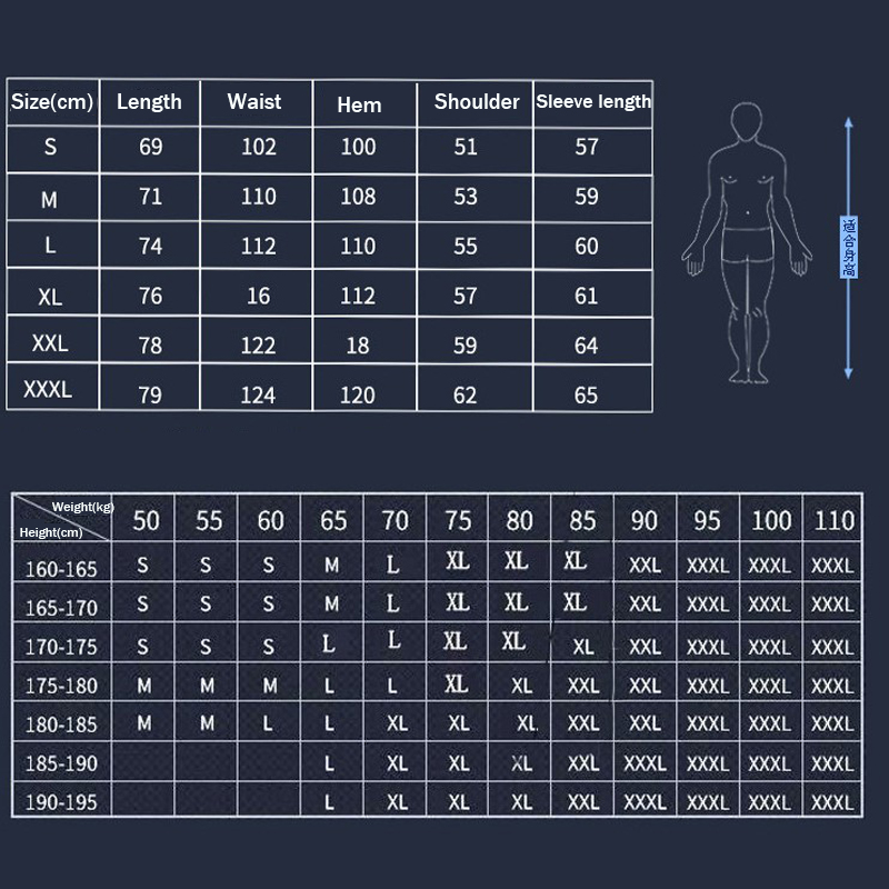 Примечание: Пожалуйста, убедитесь, что обхват груди куртки не менее 15 см больше вашего фактического размера груди.