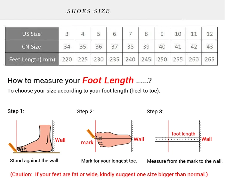 Примечание: Измерьте стоя, поставив ногу плотно на пол параллельно другой ноге. Точный размер зависит от вас, пожалуйста, тщательно Измерьте, поскольку мерки снимаются вручную, может быть погрешность составляет около 0,5 см.