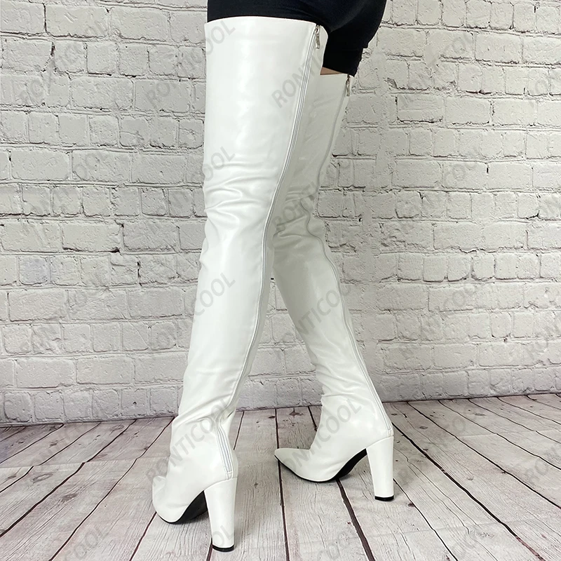 Rontic/новые женские зимние сапоги до бедра ручной работы элегантные черные вечерние Сапоги унисекс из искусственной кожи на блочном каблуке с острым носком американские размеры 5-15