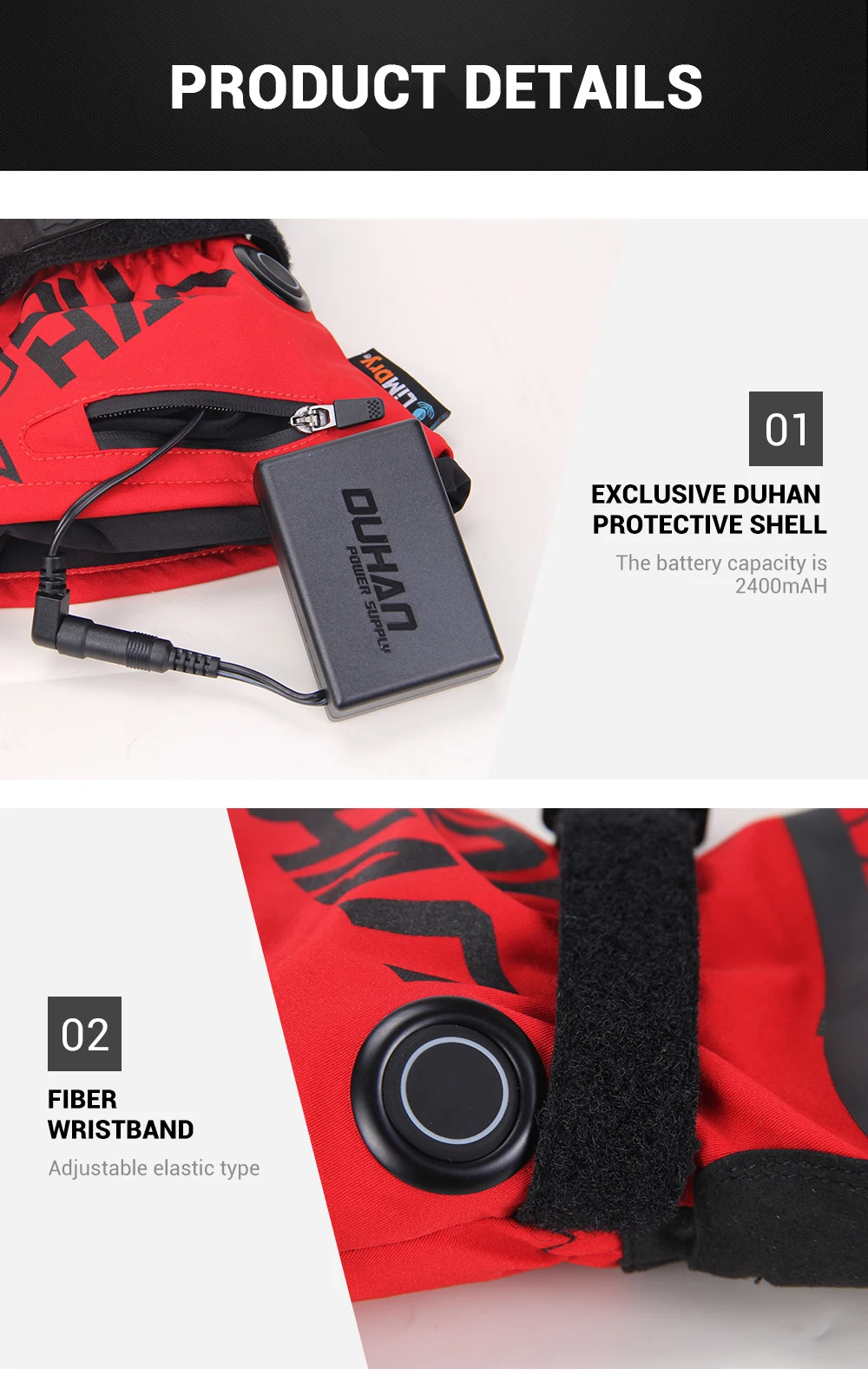6. Встроенный карманный дизайн на запястье, поместите чехол для аккумулятора.