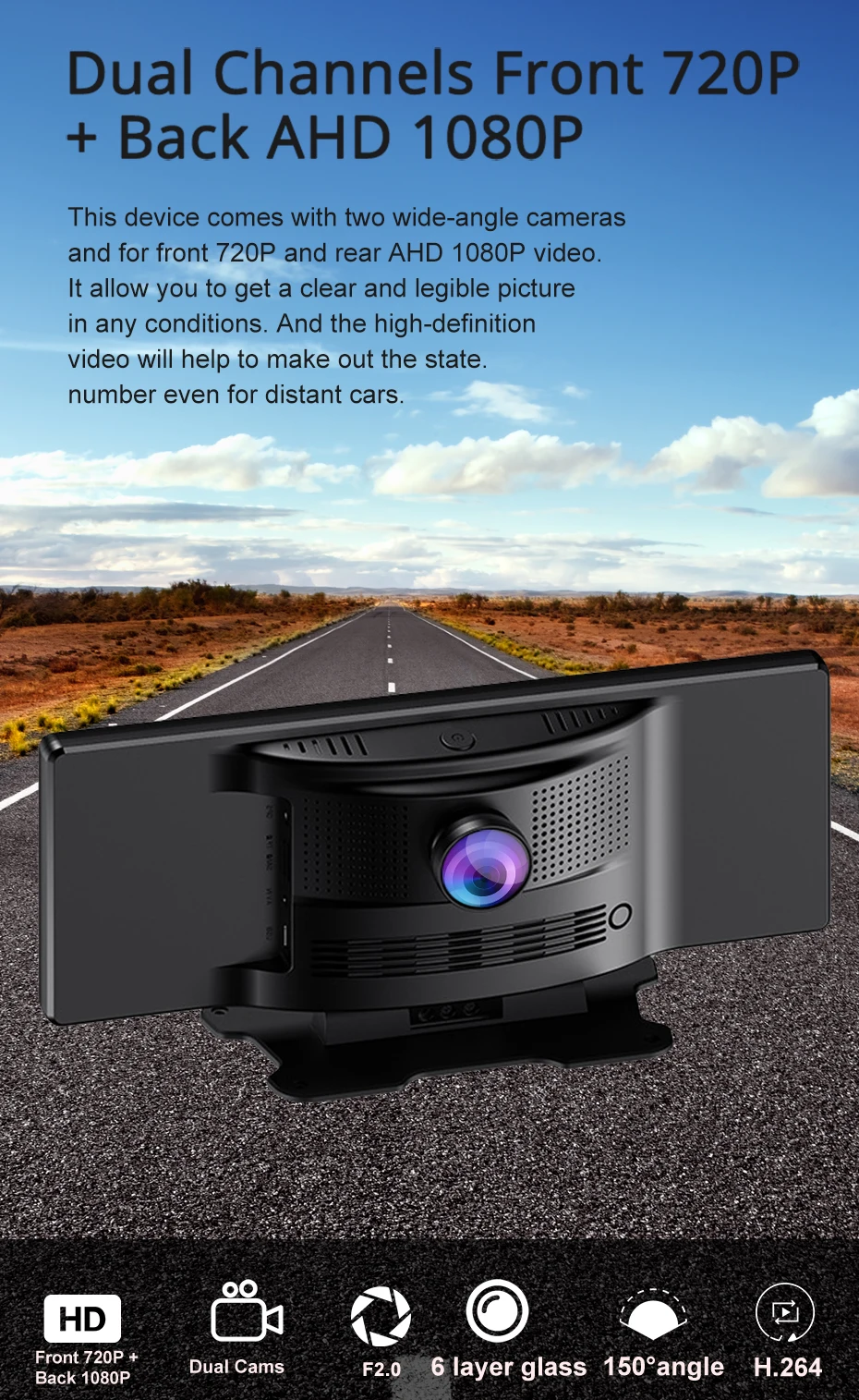 ** Основные Особенности: двойной Камера, g-сенсор, Сенсор с зеркалом заднего вида, циклическая Запись 24 часа в сутки, мониторинг парковки, ночное видение, отображение времени и данные Дисплей с зеркалом заднего вида, широкий динамический диапазон