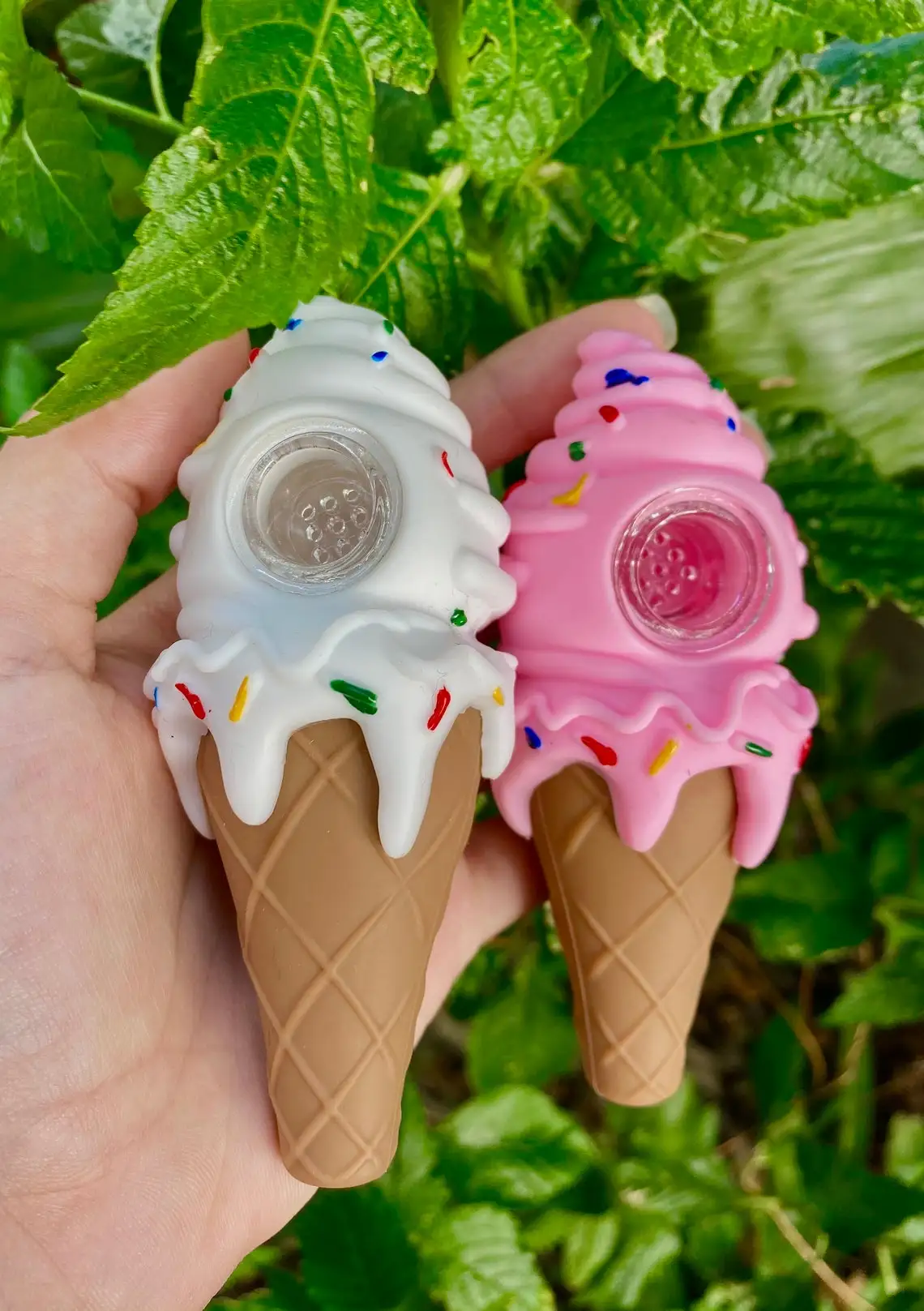 Розовая силиконовая труба для мороженого со стеклянной чашей