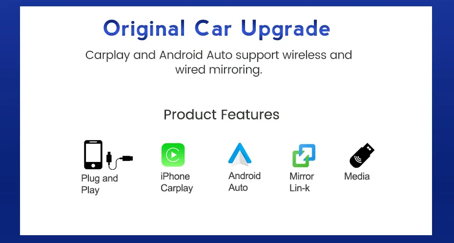 1. Работает с беспроводным Apple CarPlay, сопряжение через Bluetooth, передача через WIFI. 2. Новая функция Airplay, соединенная с usb-кабелем, воспроизведение фильмов/навигации/музыки с iPhone
