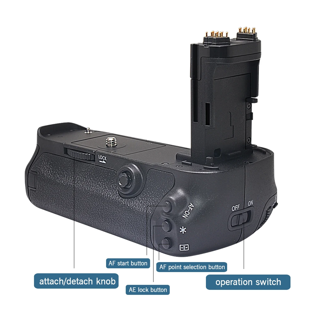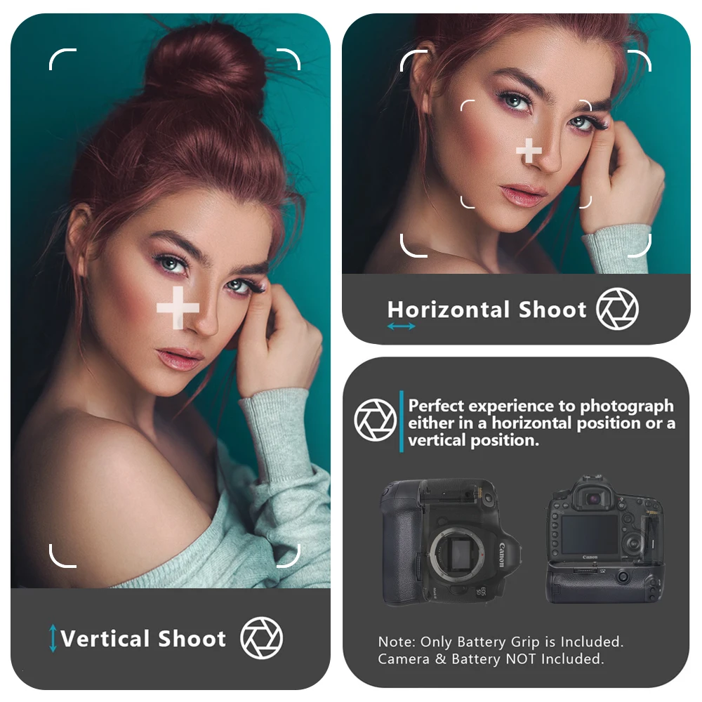2. Поддержка двух LP-E6 литиевых батарей или шести батарей AA (не входят в комплект)-двойной Срок службы батареи.