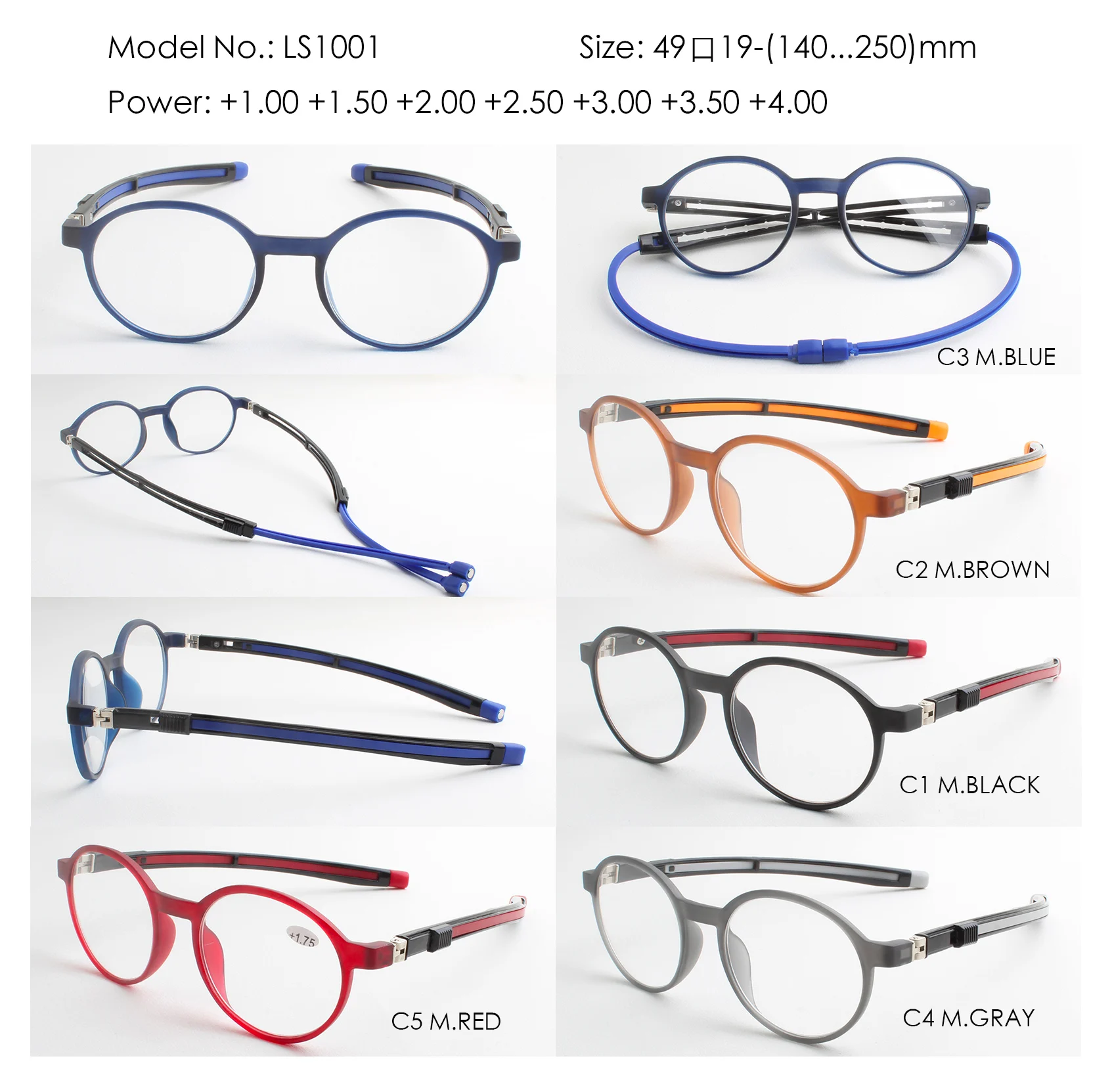 Мощность глаз: + 1,00, + 1,50, + 2,00, + 2,50, + 3,00, + 3,50, + 4,00