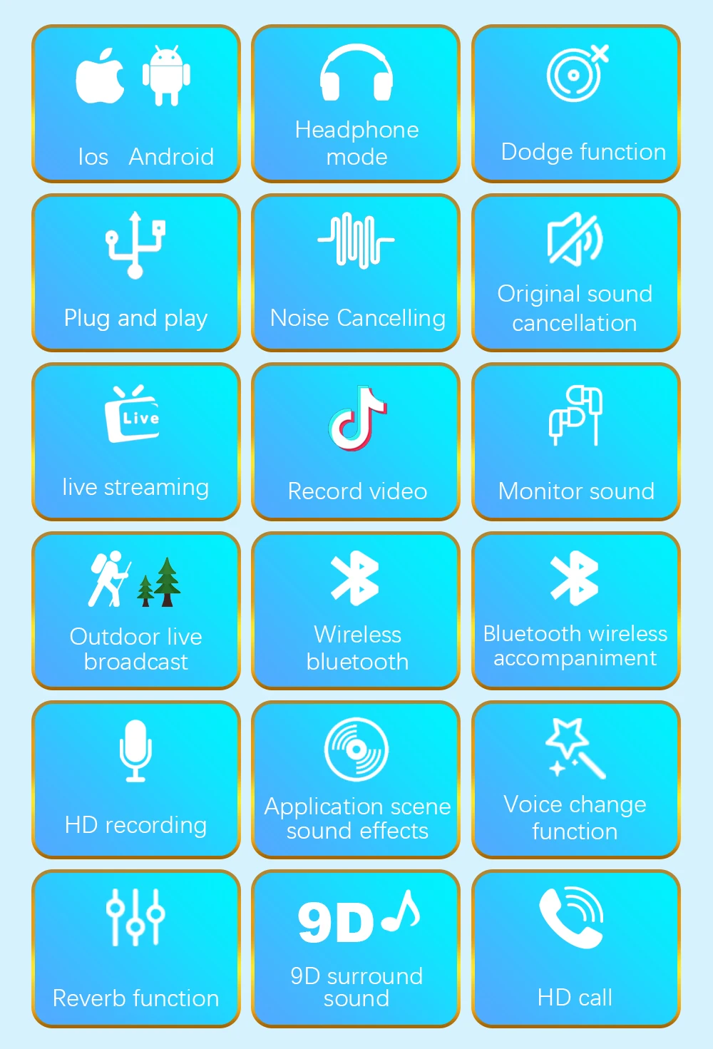 Человеческий голос автоматически оптимизируется через встроенную звуковую карту гарнитуры, и стерео усилен. Вы обнаружите, что вы также можете выполнять отличное пение.