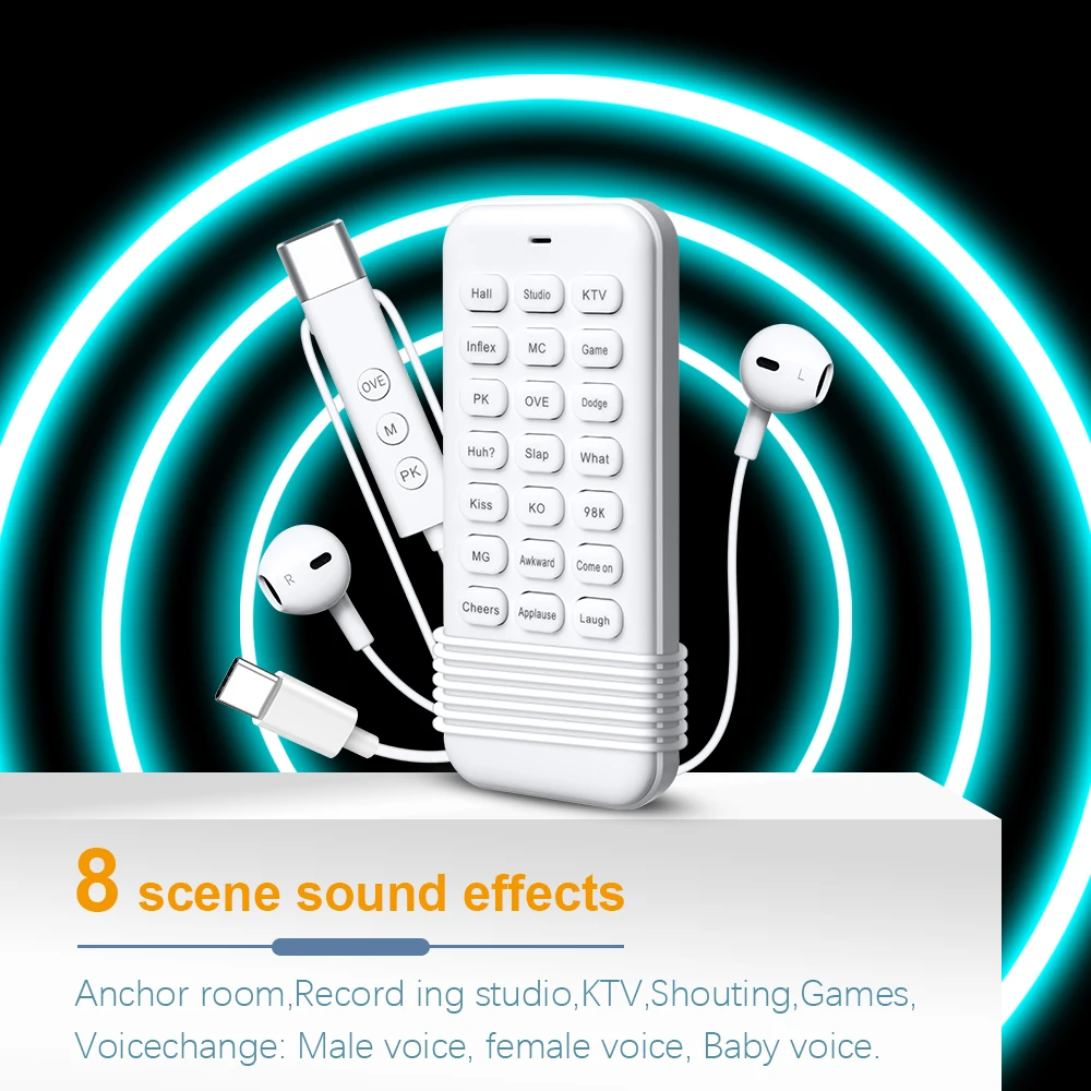Через пульт дистанционного управления вы можете добавить 12 различных звуковых эффектов в реальном времени, чтобы увеличить живое вещание живыми эффектами. Активные звуковые эффекты: hh?, Slap, What, Kiss, KO, 98k, MG, neutry, ну же, ура, аплодисменты, смех.