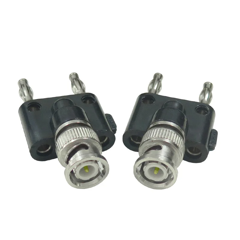 1 x BNC штекер на 2x4 мм терминальный адаптер, полезный адаптер, включающий штекер BNC, заканчивающийся на двойные 4 мм клеммы красного и черного цвета с 4 мм гнездами, сигнал подключается к красному терминалу.