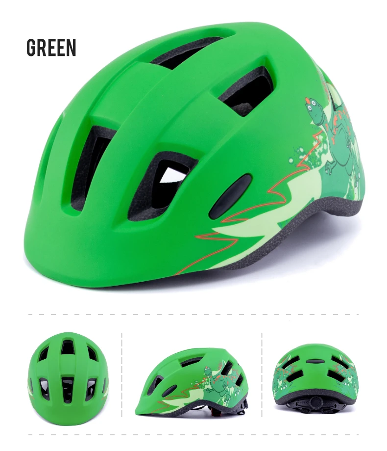 Kids Bicycle Helmet Children Boys green MTB Bike Helmet Girl Cycling Child Skating Sport Safety Cap Size 48-54cm for 5-10 Years