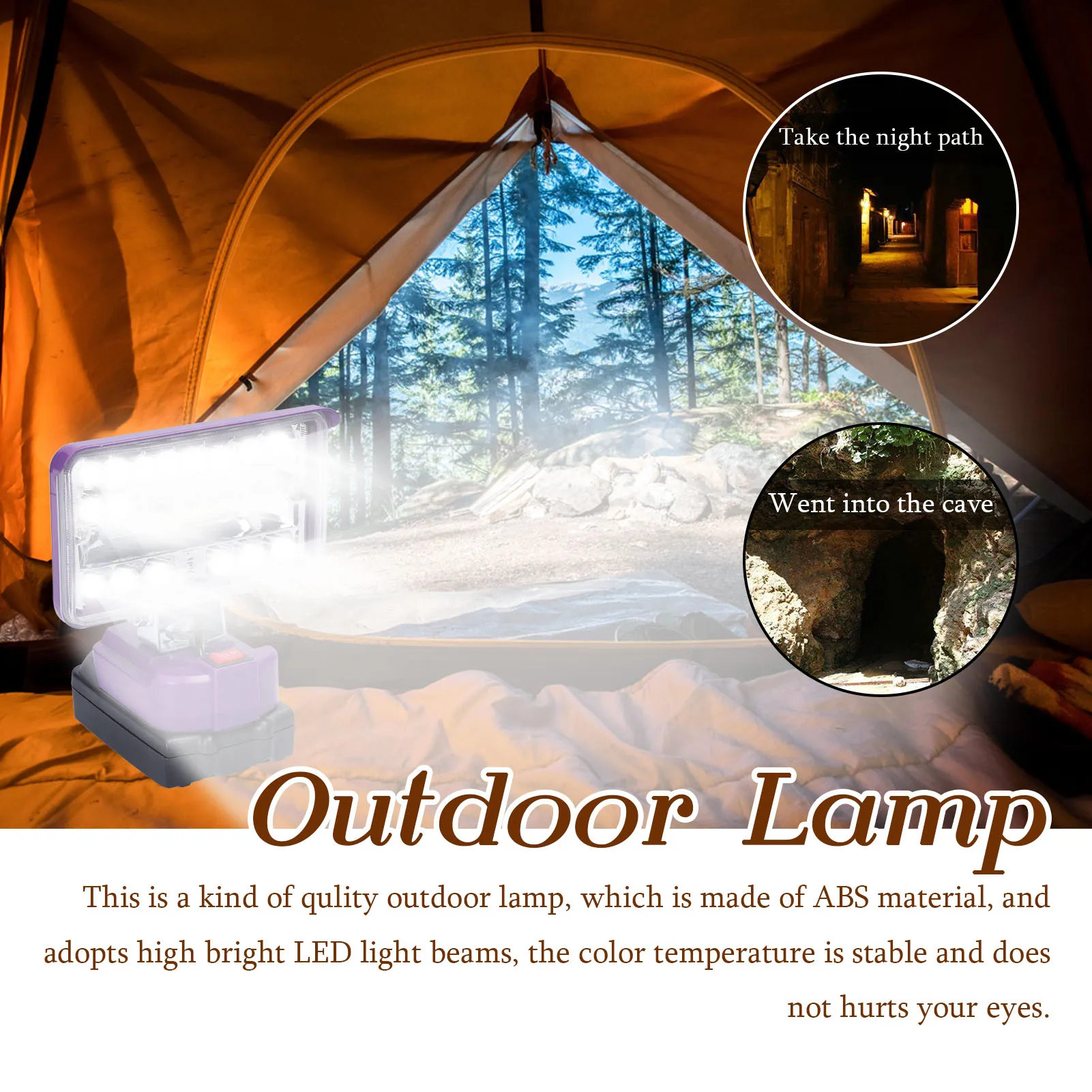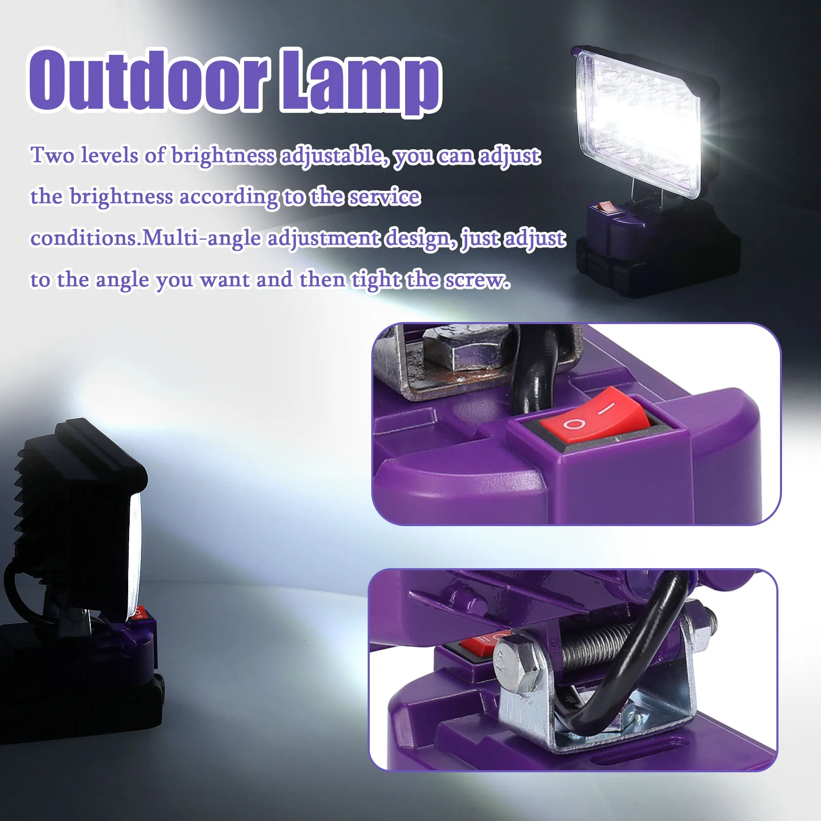 Это своего рода Высококачественная наружная лампа, которая изготовлена из материала ABS и имеет высокий яркий светодиодный светильник, цветовая температура стабильная и не вредит вашим глазам. Конструкция с регулировкой угла, просто Отрегулируйте угол, который вы хотите, а затем затяните винт. Поставляется с большой емкостью перезаряжаемой литиевой батареи, которая также может использоваться для подзарядки мобильных телефонов и планшетов. Доступны два типа, вы можете попробовать.