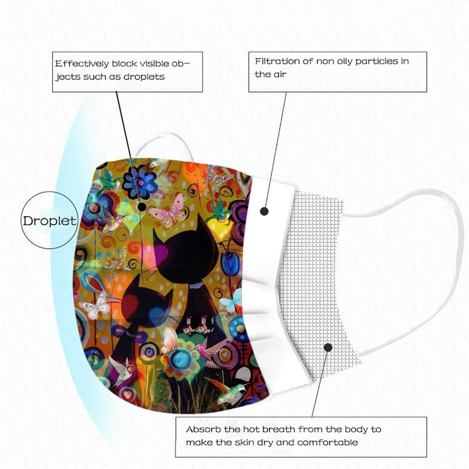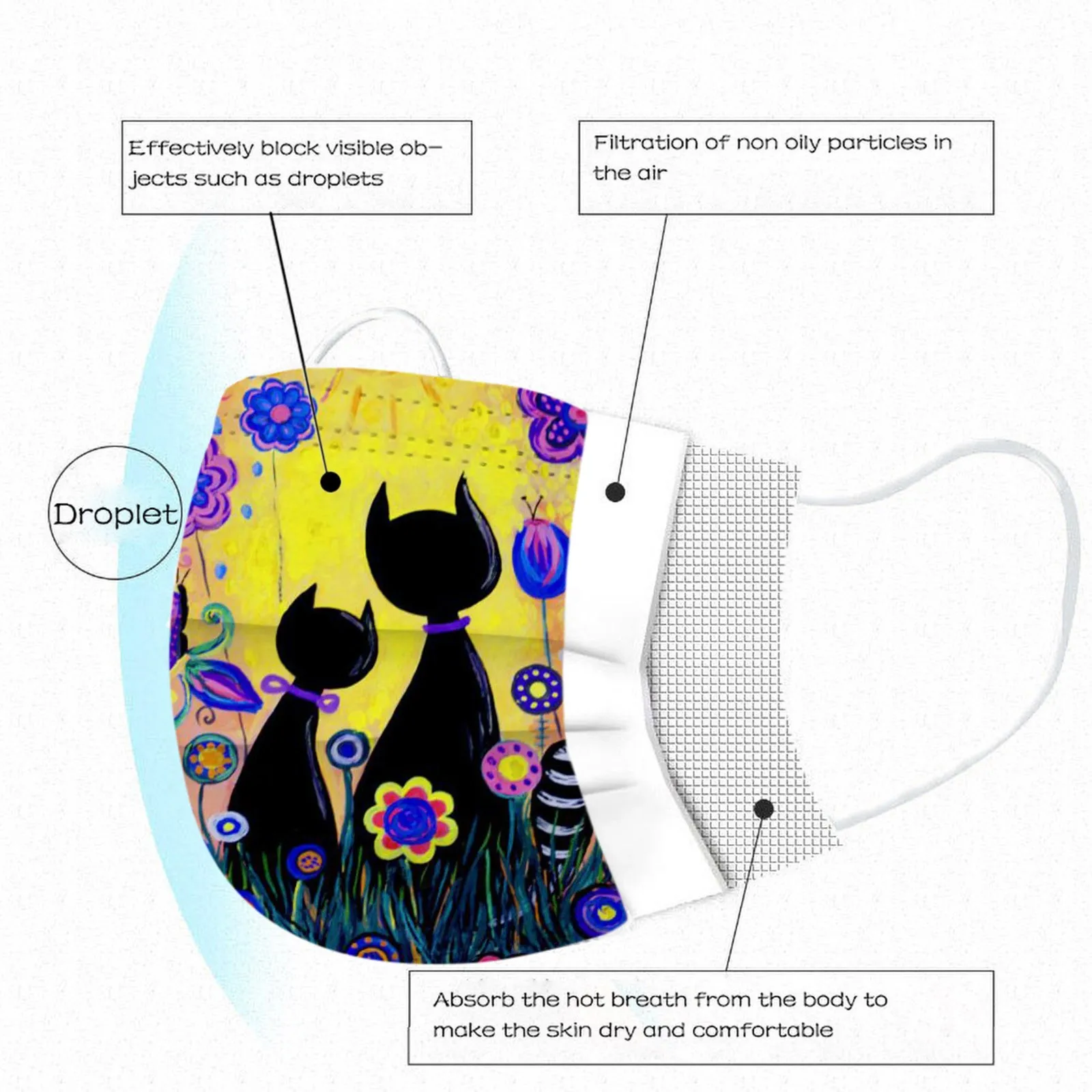 3 слоя Нетканая одноразовая маска изготовлена из 3 слоев нетканого материала, он безопасен для здоровья и безопасный для вас, чтобы использовать. Дышащий материал и милые узоры, что делает его полезным и модным. Специальный 3 слоя из нетканого материала, дизайн, обеспечивает некоторые меры защиты от пыли, автомобильный отходящий газ, пыльцу и т. Д. Эластичная петля уха позволяет легко снимать и надевать цепочку и не давит на уши. Маникюрный салон или любые другие области, где может потребоваться защита