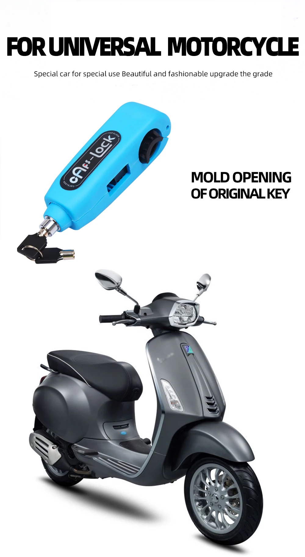 -- Этот замок был разработан как простой в использовании, хорошо Видимый, широко подходит для всех скутеров, мотоциклов и квадроциклов.