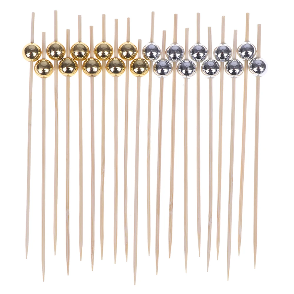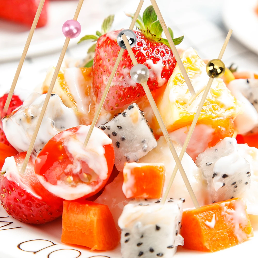 Головка бамбуковой палочки разработана в яркой жемчужной форме, которая, очевидно, более элегантна, красочна и привлекательна, чем обычные бамбуковые палочки, чтобы украсить еду, напитки или столешницы.