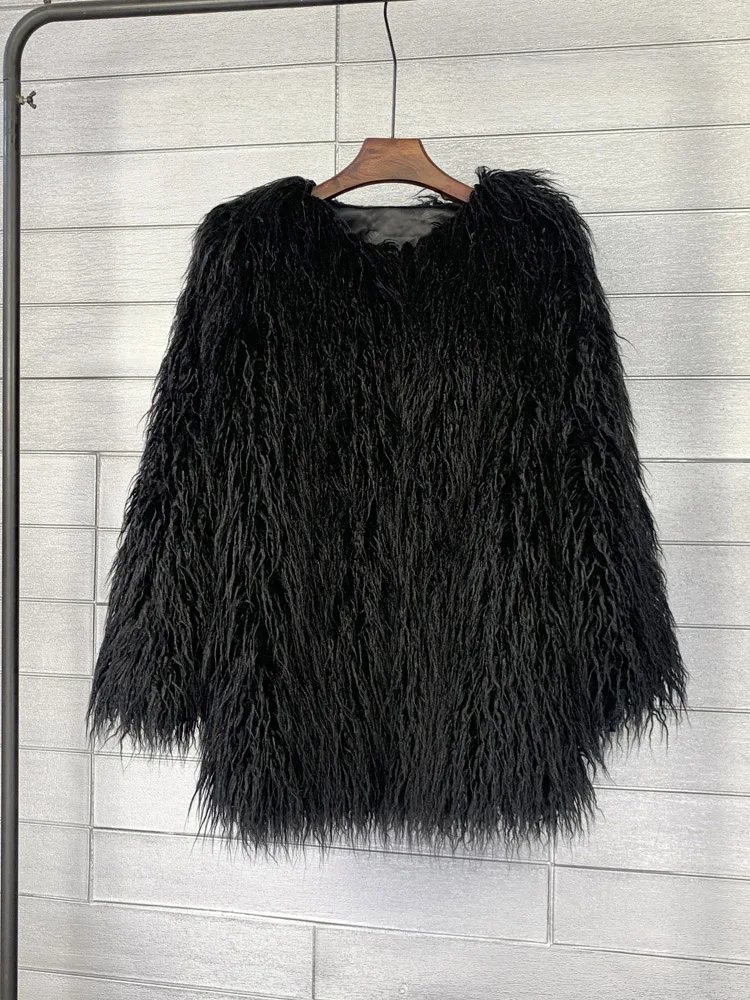 ZADORIN, зимнее пальто средней длины из искусственного меха, Женская корейская мода, карамельный цвет, длинный рукав, пушистый искусственный овечий мех, куртка, черное, розовое пальто