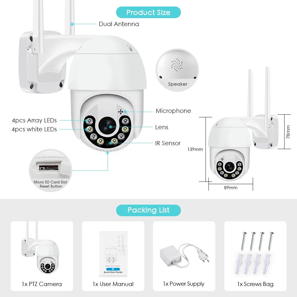 2,4 ГГц Wi-Fi / 5X цифровой зум/автоматическое отслеживание/двухстороннее аудио/AI человека обнаружения/IP66 Водонепроницаемый/ИК Ночное видение